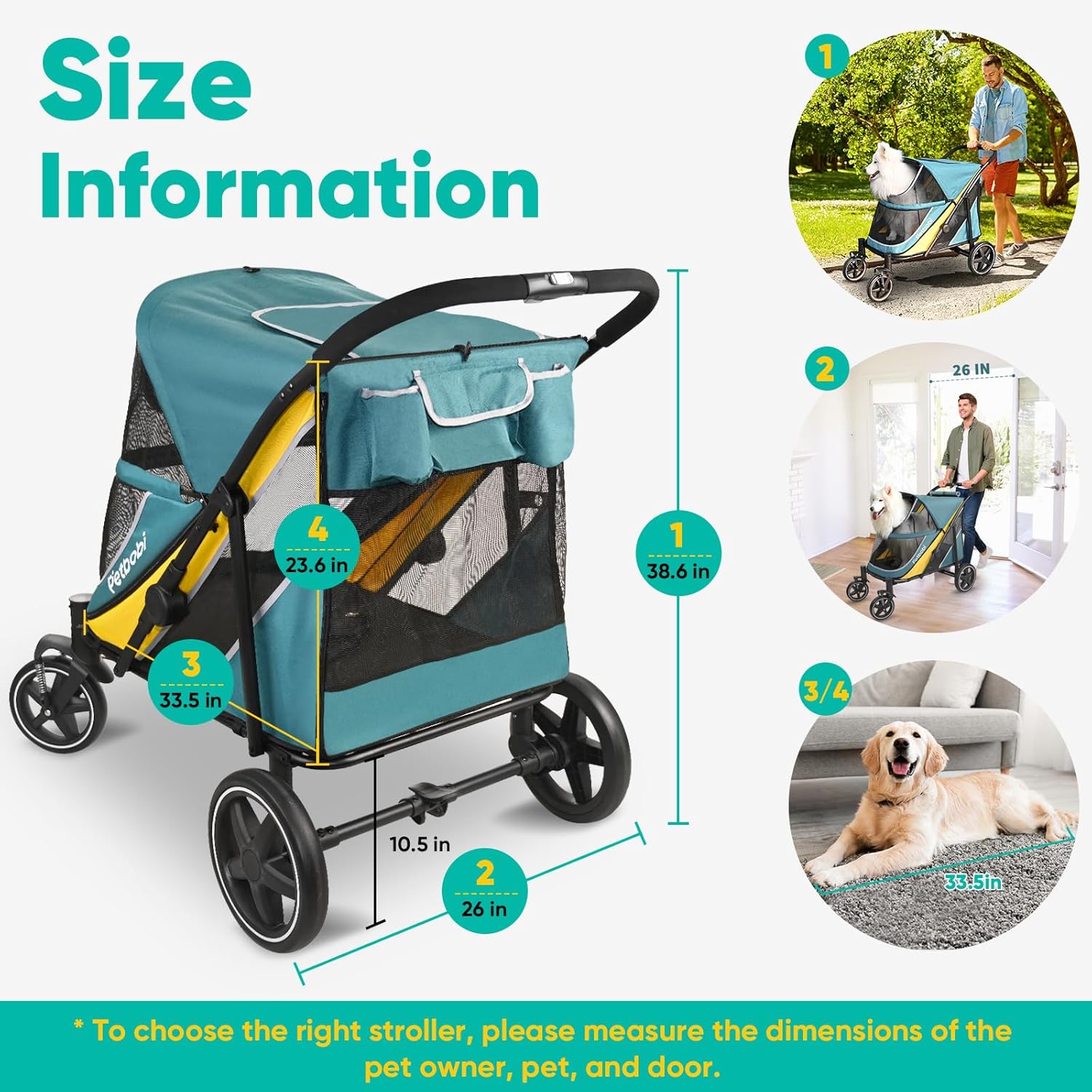 - Spacious and All-purpose: Petbobi dog stroller for medium dogs offers a roomy interior with dimensions of 34" L x 20" W x 25" H. Customize your outings with Petbobi's large dog stroller, ideal for the store, mall, hospital, travel, or just a walk