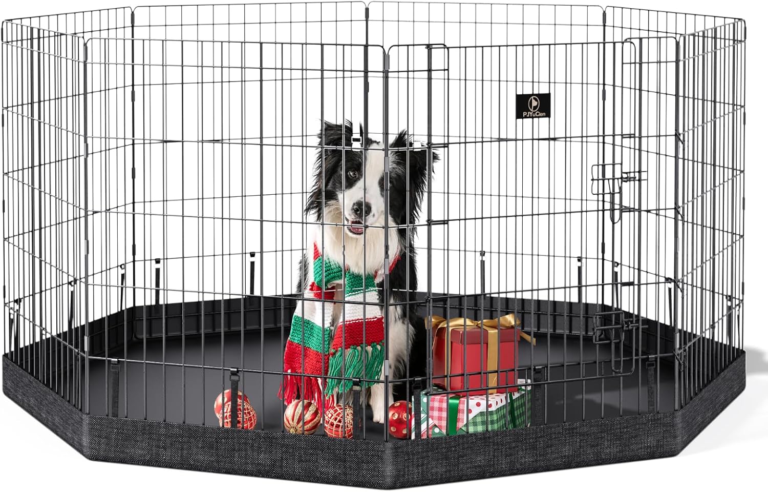 PJYuCien Dog Playpen, 8 Panels 30’’H Dog Pens Indoor with Bottom Pad, Metal Foldable Pet Puppy Exercise Fence Crate Kennel, Better for Small Animals,Black