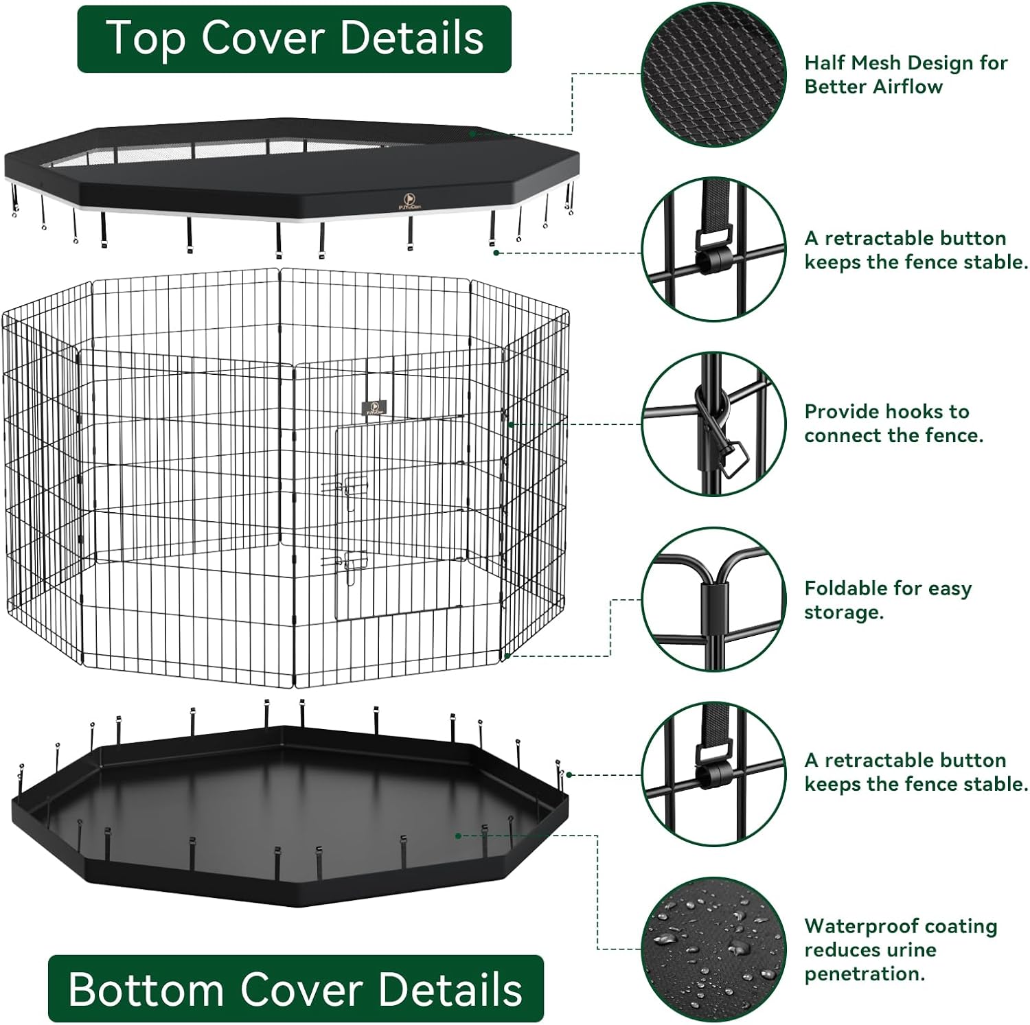 PJYuCien Dog Playpen, 8 Panels 30’’H Dog Pens Indoor with Bottom Pad and Top Cover, Metal Foldable Pet Puppy Exercise Fence Crate Kennel, Better for Small Animals,Black