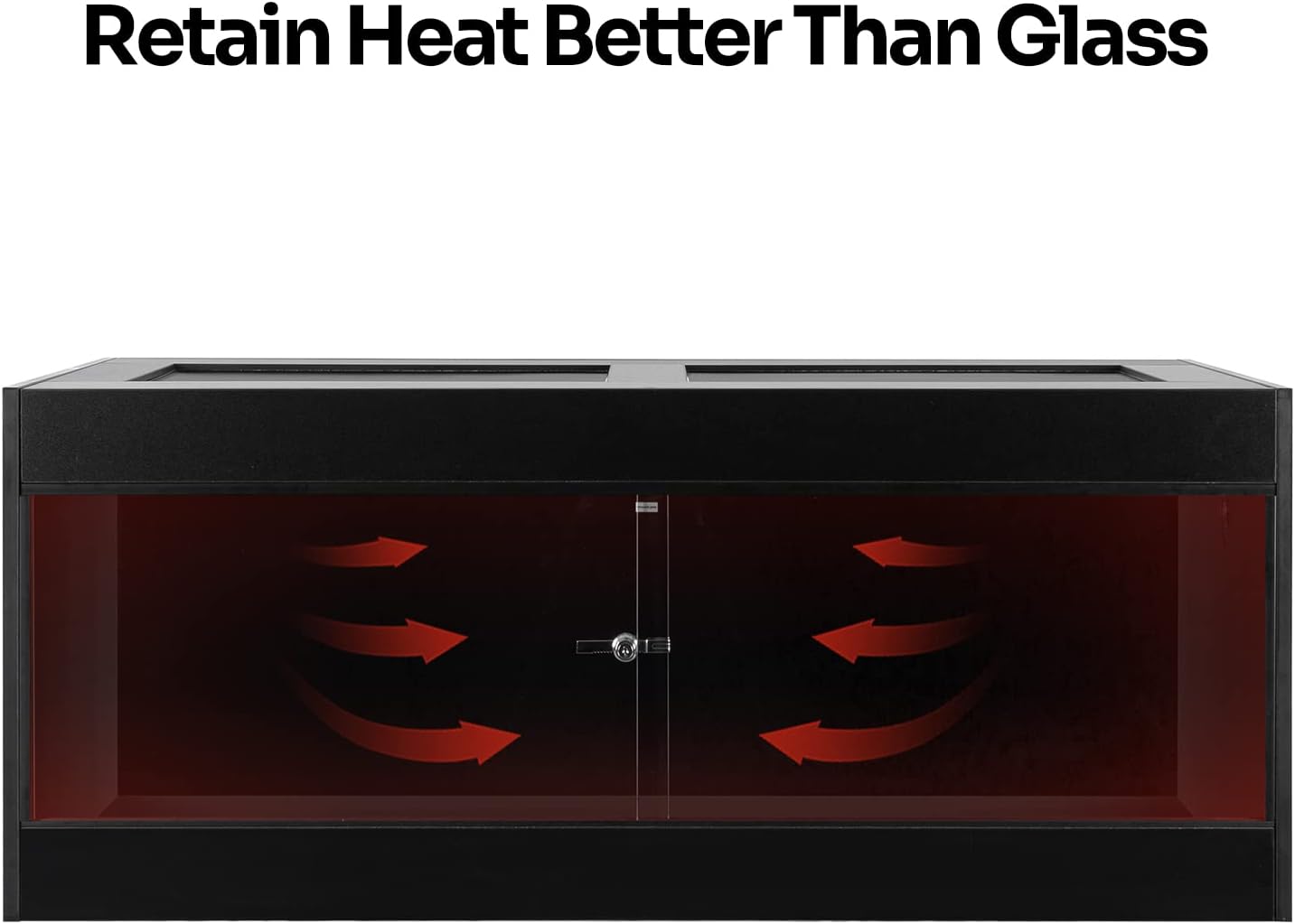 - γRetain Heat Better Than GlassγUnlike glass or screen enclosures, the thickened wooden reptile enclosure provides excellent heat insulation, more in line with natural reptiles environment. Black and non-reflective surfaces reduce stress in your pets.