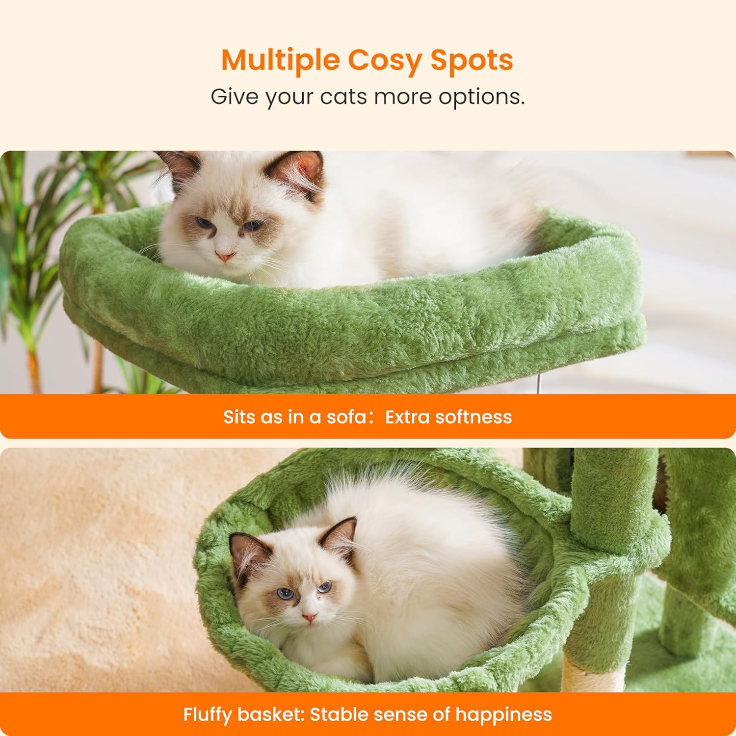 - Lazy Cats Favorite Basket: Cats naturally like the feeling of being wrapped, which makes them feel safe, Heybly The basket of this cat tree is fixed on both sides for more stability and safety.