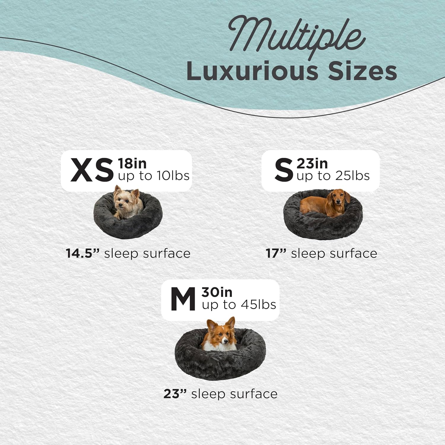 Best Friends by Sheri Original Calming Donut Dog and Cat Bed, Lux Faux Fur, Mink Dark Gray, XS (18in x 18in) - Anxiety Relief for Pets Up to 10 lbs