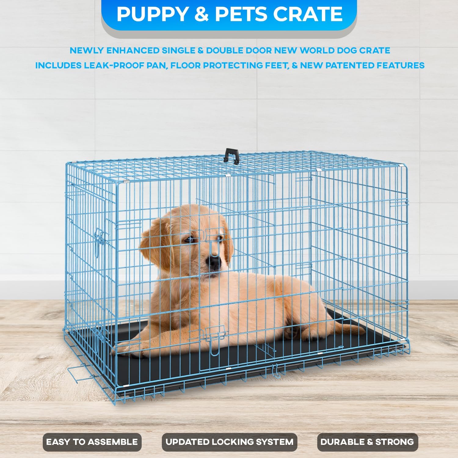 FDW Dog Crate for Small Dogs 24 Inch Folding Metal WirePet Cage Double Door W/Divider Panel Indoor Outdoor Kennel Leak-Proof Plastic Tray,Blue