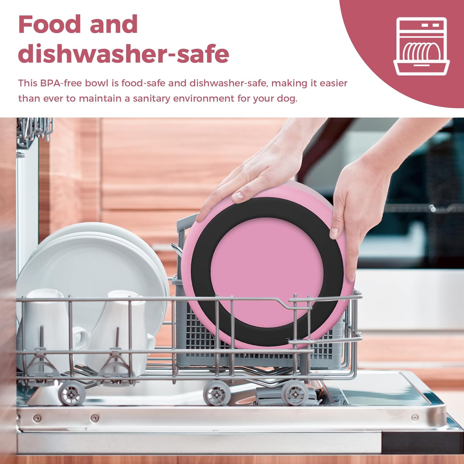 - Non-Slip: The bottom of our dog bowl is made of silicone and will not scratch the floor. Are you afraid that in a quiet resting environment, your pet will make a sound of rubbing against wood and tiles because it eats happily? Our dog bowl basically prevents this situation from happening