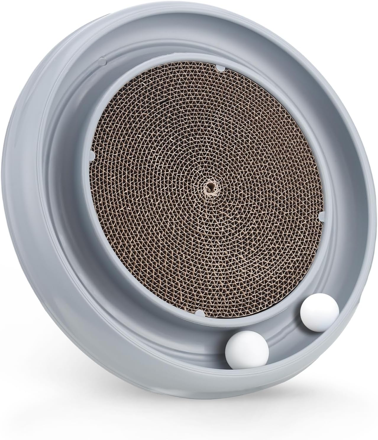 Cat Scratching Board with Balls for Cats Grinding Claw, Round Cat Scratcher Interactive Toy, Cat Ball Track Scratcher Pad for Cats Exercise Play(Grey)