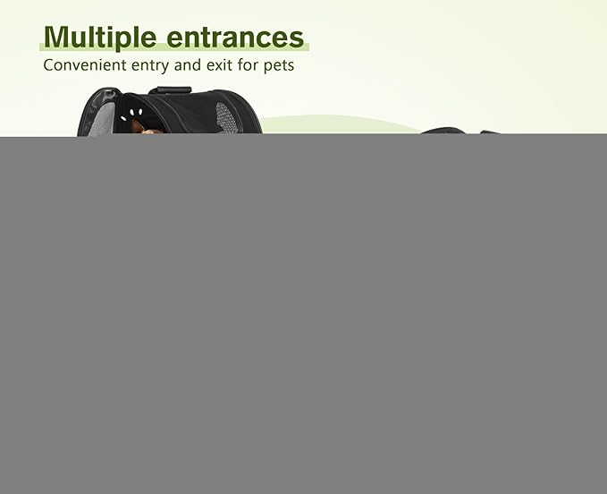 - 【 CONVINIENT & COMFORTABLE & SAFE 】: The cat travel backpack provides multiple entrances for convenient access to your pet. The internal pet cushion is integrated with a thick board and sponge that offers a flat and comfortable resting place. Comes with safety belts and buckled zippers to prevent pets from accidentally escaping. Additionally, the pockets on both sides can store food, poop bags, and some necessary accessories.