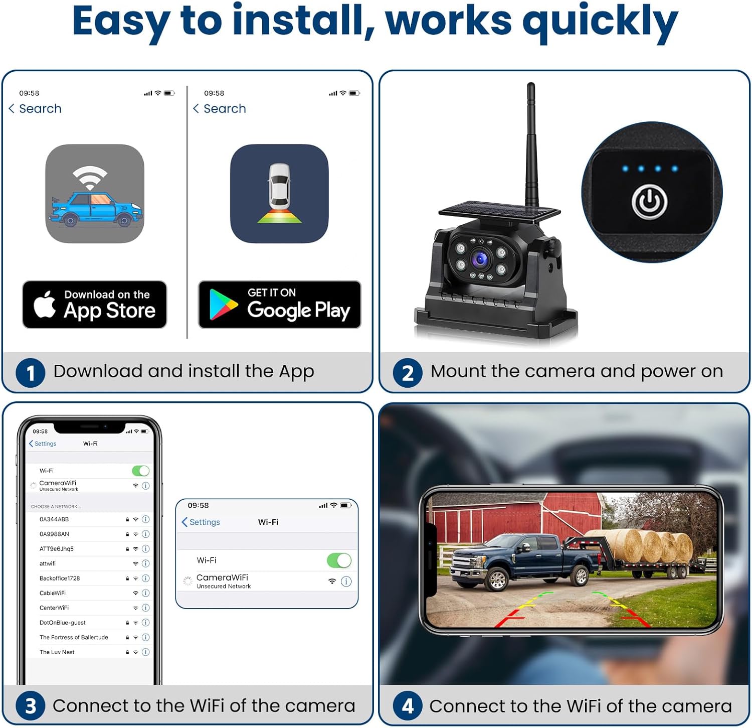 Hikity Wireless Backup Camera Solar Magnetic WiFi, HD 1080P Rechargeable Rear View Camera for Truck/Trailer/RV/Camper, IP68 Waterproof Reverse Camera, Clear Nigh Version, Wide Angle