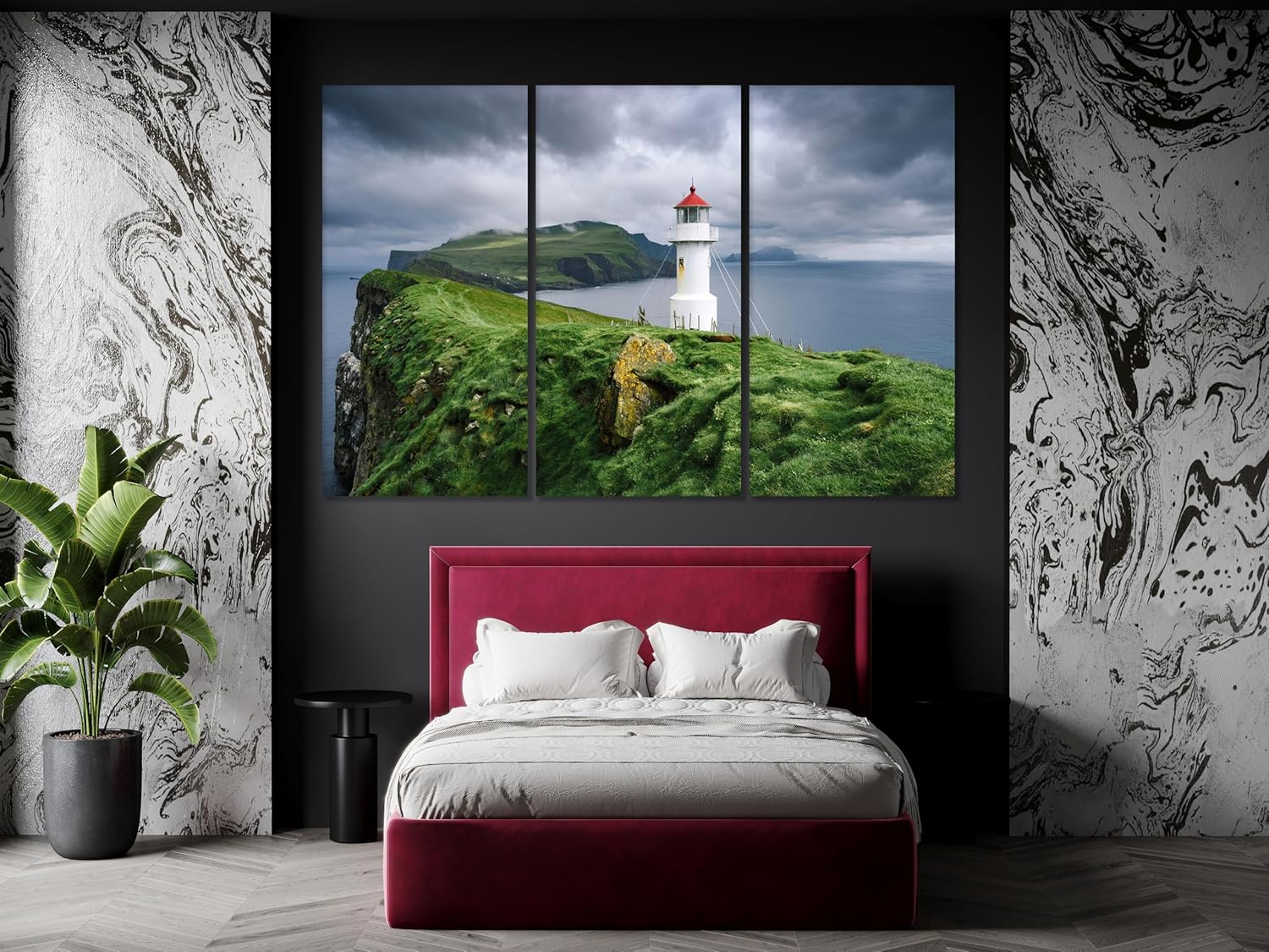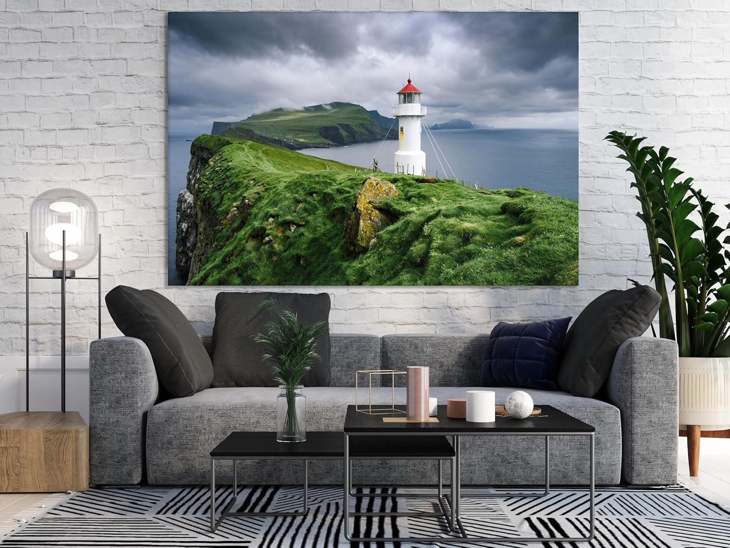 Nature Wall Art Prints - Ocean Forest Mountain Lake Canvas Landscapes - Small to Extra Large Living Room Bedroom Kitchen Bathroom Décor (Stormy Sky Lighthouse, 31L" x 47W")