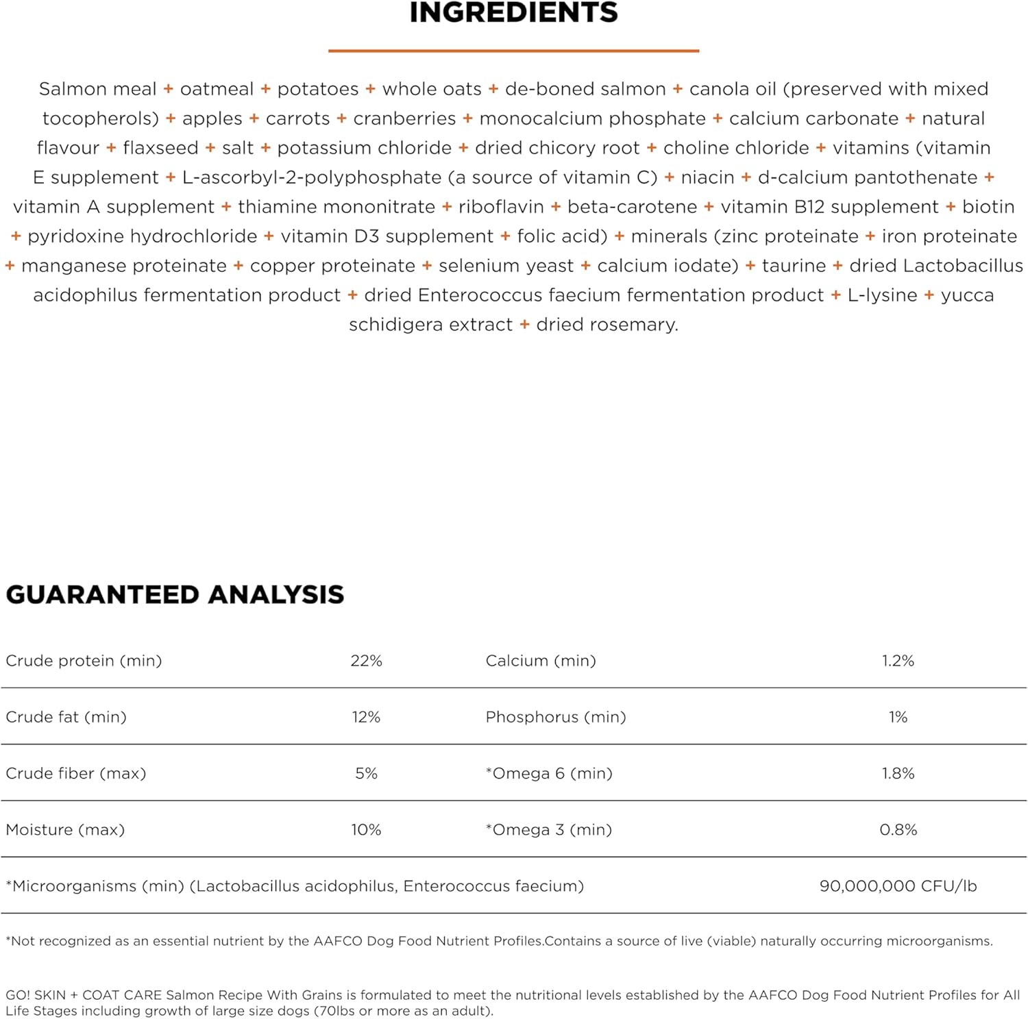 Go! Solutions Skin + Coat Care, Dry Dog Food, Salmon Recipe with Grains, 22 lb Bag