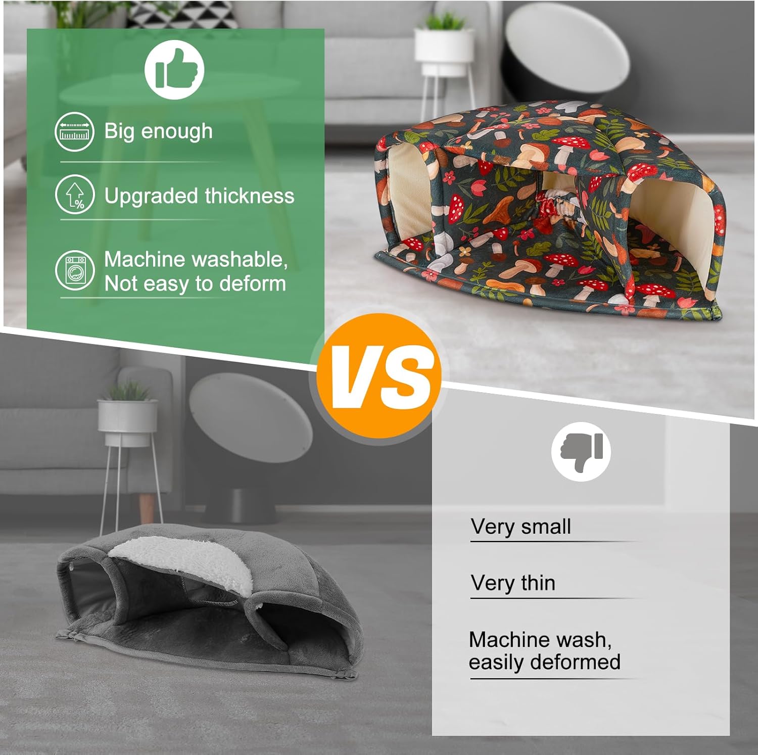 - Machine Washable: The guinea pig hideout is made of short plush and high-density elastic sponge; Not only is it very soft to the touch, but also more comfortable and warm, the fabric is thick enough to hold its shape and stay upright after many washes
