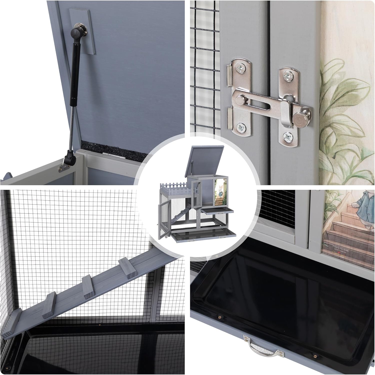 - Pet Hutch for Rabbits Pets: Designed with 3 tiers including a lower run, an upper retreat, and an open balcony for tool storage, the gray rabbit pen creates an activity center for 2 and more small bunnies to play and rest safely and comfortably