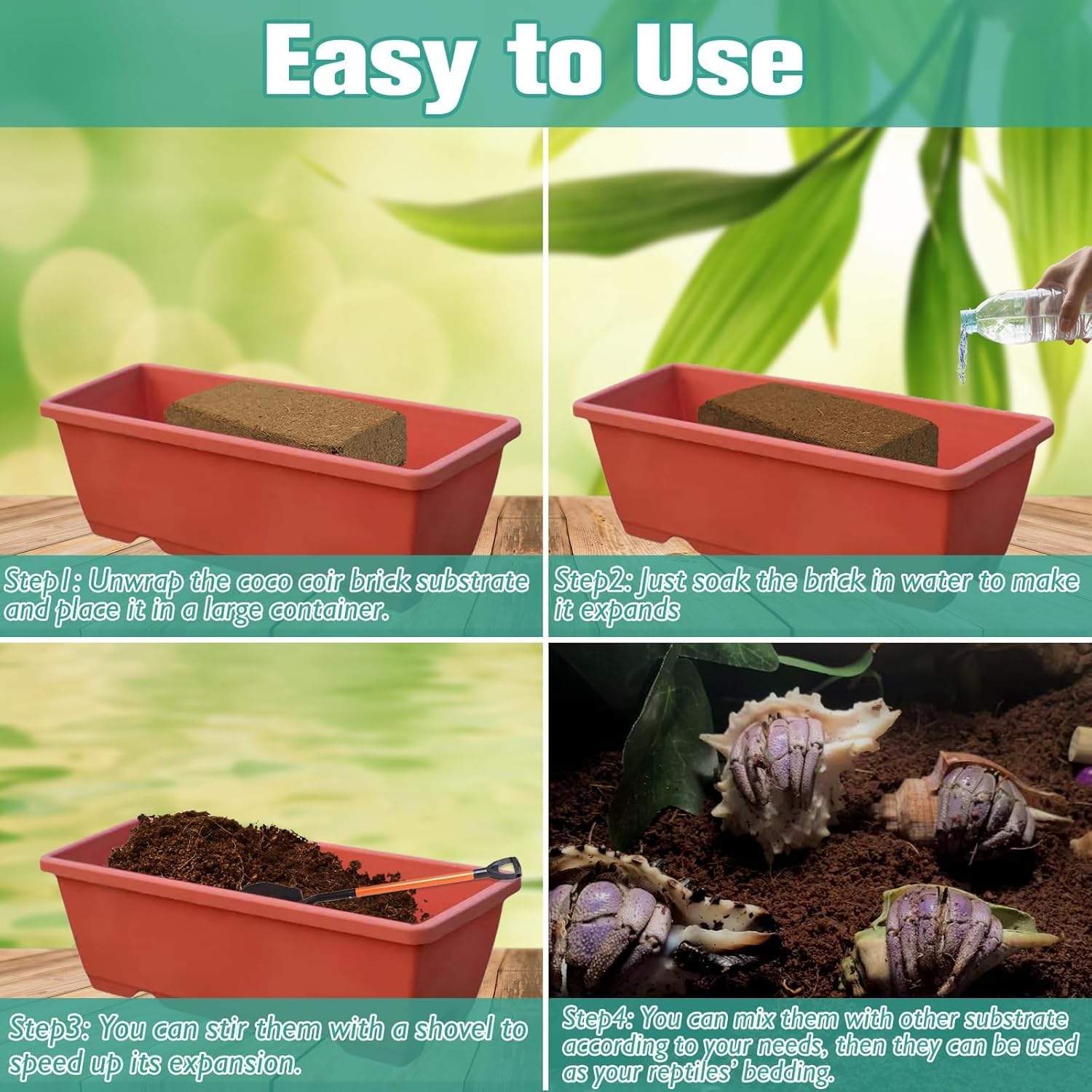 - Minimize Odor & Break Down Waste: Our coco coir substrate for reptiles can minimize odor and break down waste. It can provide a clean, comfortable living environment for your reptiles. Making them feel more like at home.
