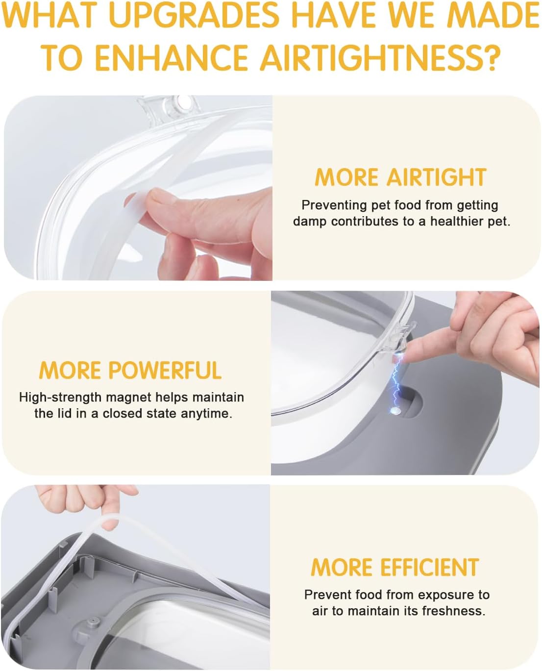 - MOISTURE-PROOF: Airtight dog food storage container, the bottom slightly elevated design allows the dry food away from wet ground to ensure that the pet fresh food is available.οΌTips:when you close the small dog food containers' transparent lid, please make sure it is completely closed with no spaceοΌ