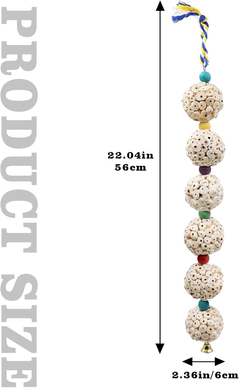 - Colorful and Auditory Delight: Each parrot chewing toy string comprises 6 sola balls separated by colorful wooden beads. At the bottom, a metal bell adds an auditory element, creating a pleasant sound when the bird indulges in chewing—an enticing and multi-sensory experience.