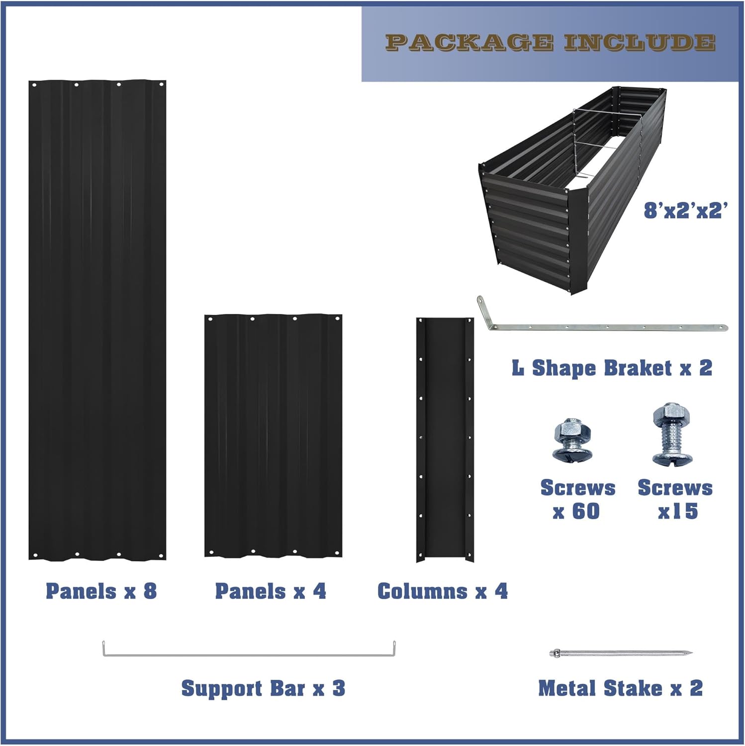 8x2x2FT Metal Raised Garden Bed Kit, Galvanized Outdoor Garden Bed Planter Box for Vegetables, Flowers, Herbs, Succulents and More, Black