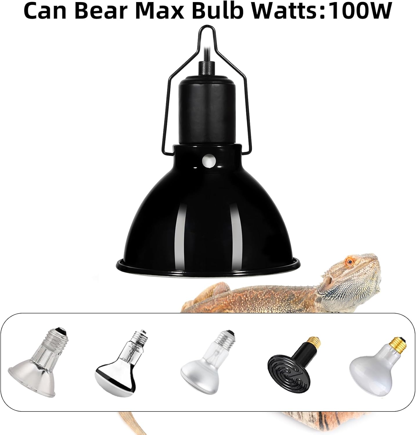 - 【Can Bear with 100W Heat Lamps】: The 5.5inch reptile heat lamp fixture can handle a maximum wattage of 100 watts. It features a standard E26 ceramic head that is heat resistant and unbreakable. The terrarium light fixture fits most reptile bulbs, and you can easily install your reptile heat lamp on the fixture.