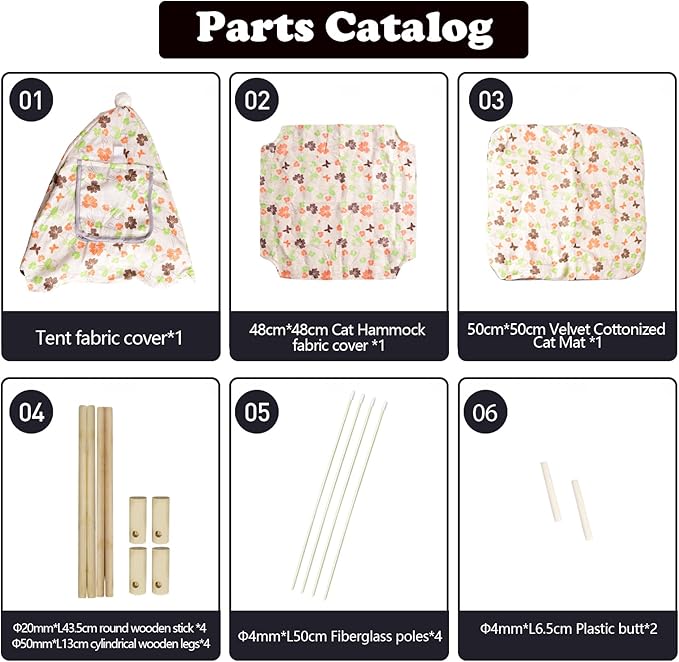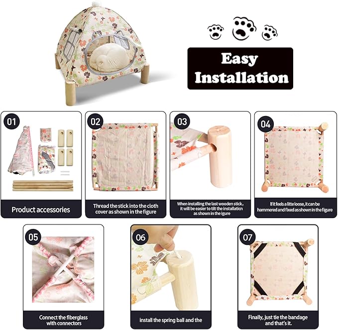 - PINE TREE MATERIAL FRAMEWORK: The supporting wooden poles of animal tents are made of polished natural wood. It is solid, healthy, safe, and safe. Make your beloved pet healthy sleep and suitable for Outdoor Cat TENTS for Indoor Cats.