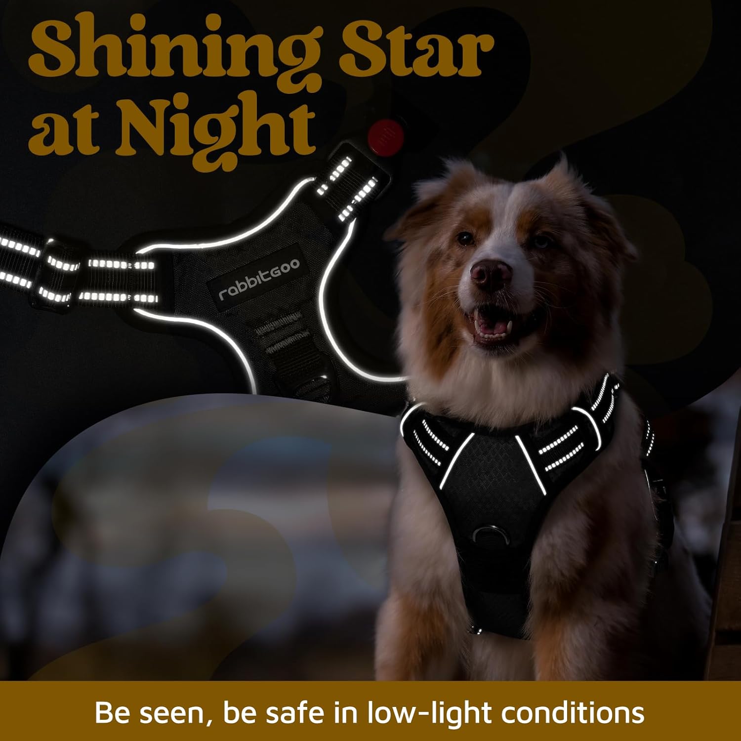 rabbitgoo Dog Harness Small Sized, No Pull Dog Vest with 3 Buckles, Adjustable Soft Padded Pet Harness with Easy Control Handle and Reflective Strips, Black, S