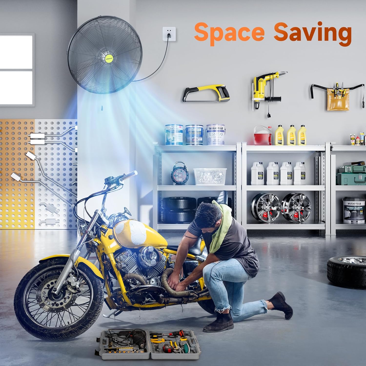 - 【Space-Saving Design】 With its wall-mounted installation, our Industrial oscillating wall mount fan saves more space than other floor-standing industrial fans. Enjoy optimal airflow without taking up space.