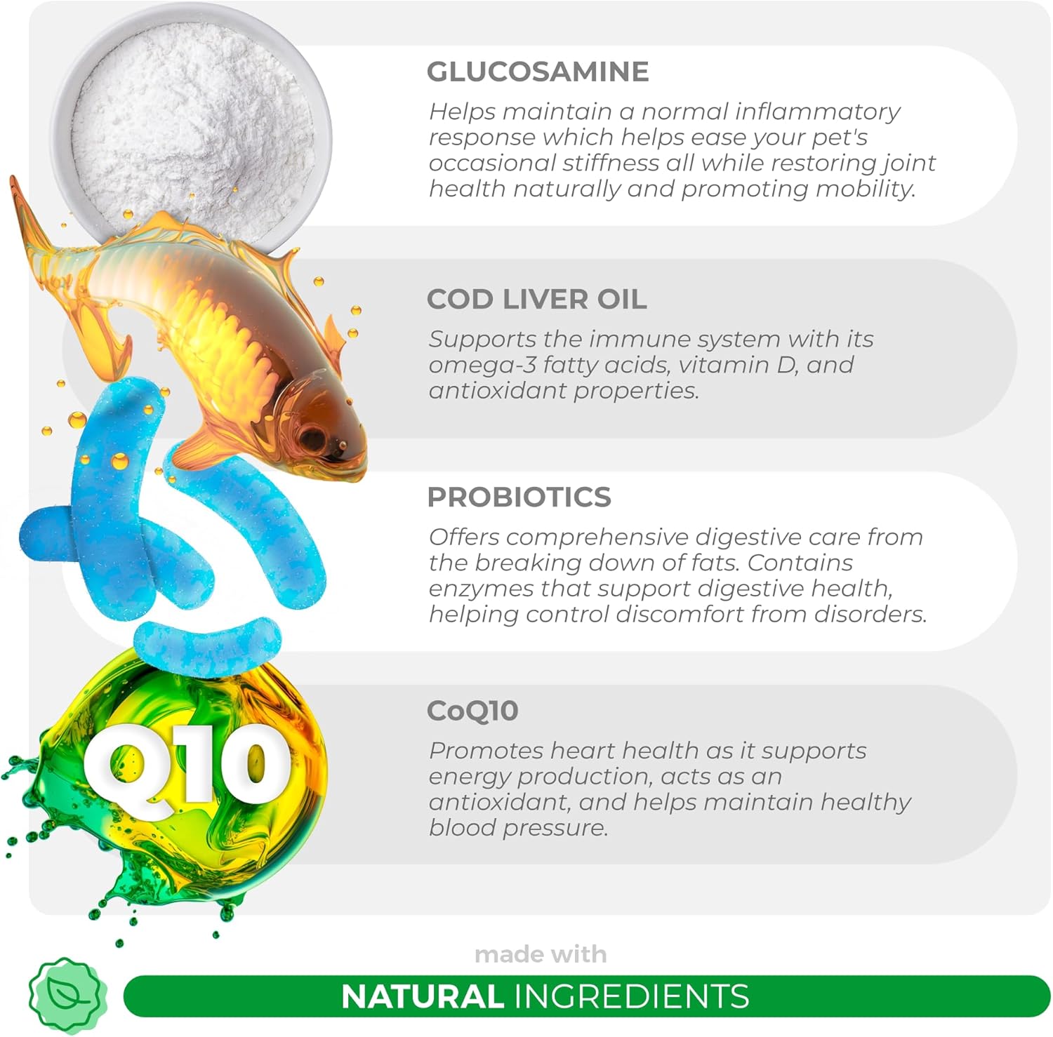 10 in 1 Multivitamin for Dogs - Glucosamine Chondroitin for Joint Support + Digestive Enzymes & Probiotics - Cod Liver Oil & Vitamins with Coq10 for Skin & Heart Health, Gut & Immune Support