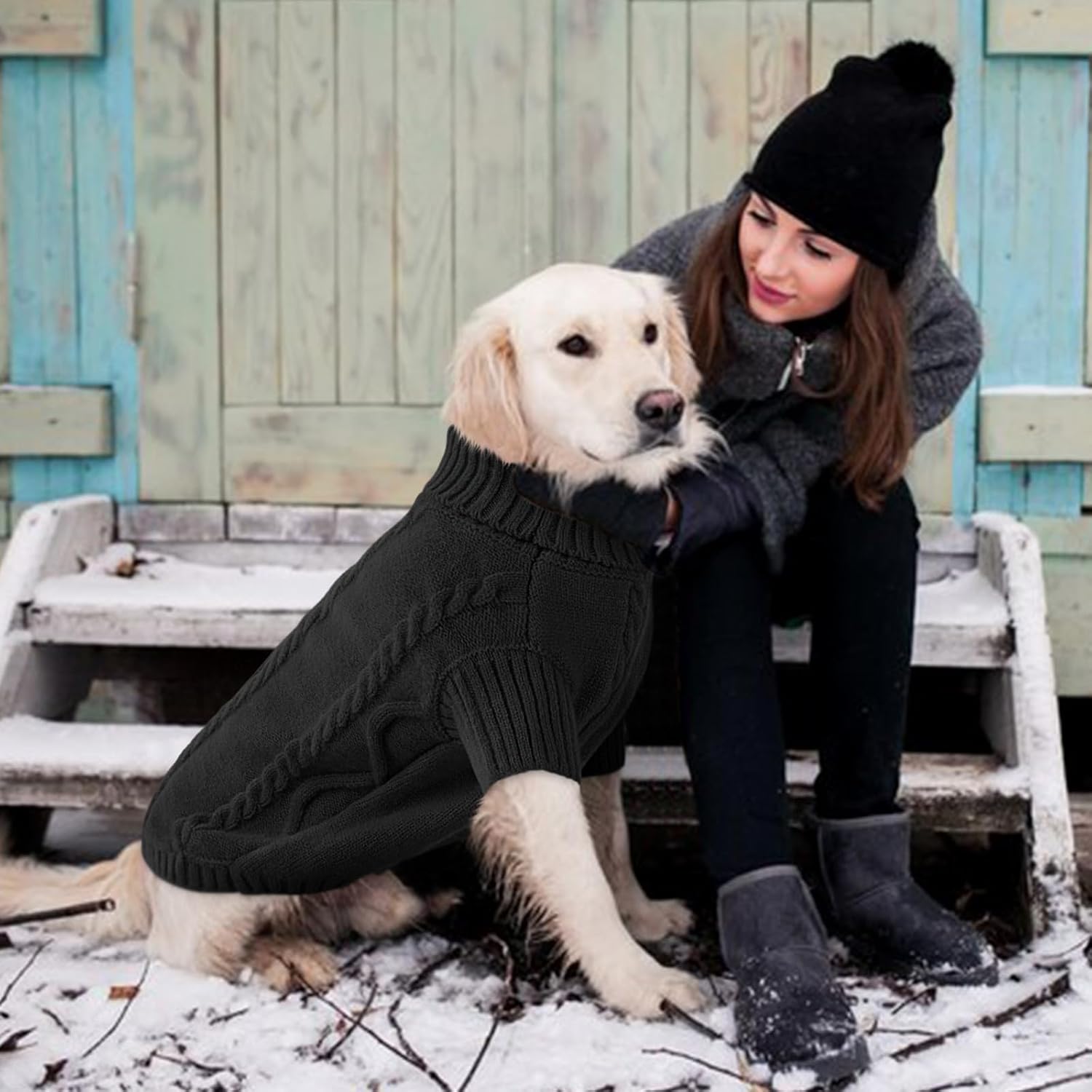 - THICK & WARM KNIT SWEATER: The dog's turtleneck large pullover chunky knitted sweater for large size dogs is made of high density acrylic yarn that is comfortable, ultra-soft, warm and easy to care. The cable knit sweater for extra large dogs is the cute winter clothes for your big dogs.