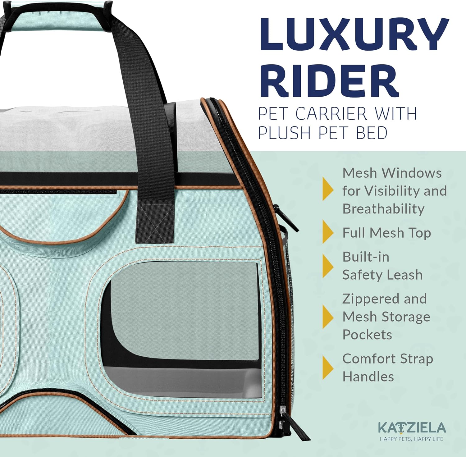 - LUXURY RIDER FEATURES β The rolling pet carrier, airline compliant Luxury Rider, offers a spacious, open feel with mesh top and side windows for ultimate visibility and breathability. Perfect for pets who love to see their surroundings and feel like a part of the action.