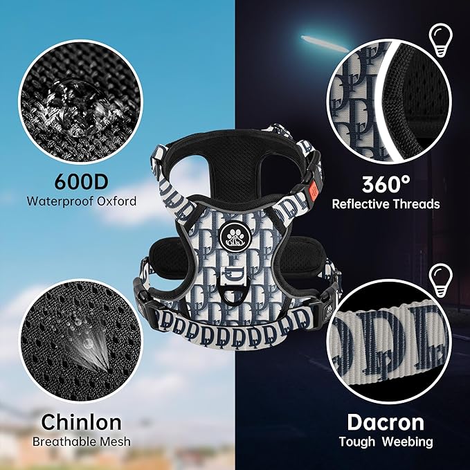 - 【EASY ADJUSTMENT】This no choke dog harness design with 4 fully adjustable straps (2 shoulder and 2 chest straps) which can be adjusted to the most fitting size, prevents the dog from breaking free while maintaining maximum comfort