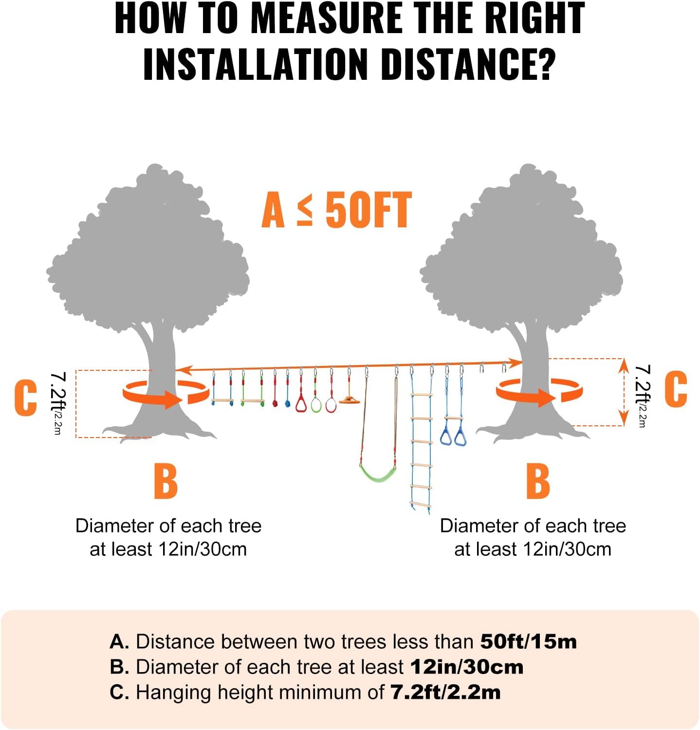 - Quick Installation and Disassembly: The outdoor playset equipment can be assembled in just 5 minutes. There's no need for a wide flat area in your yard; just fix it between two trees or poles 20 to 40 feet apart to start customizing your obstacle challenge game! It's an ideal alternative to traditional playgrounds, offering a convenient and flexible backyard challenge game for children of various ages and skill levels.