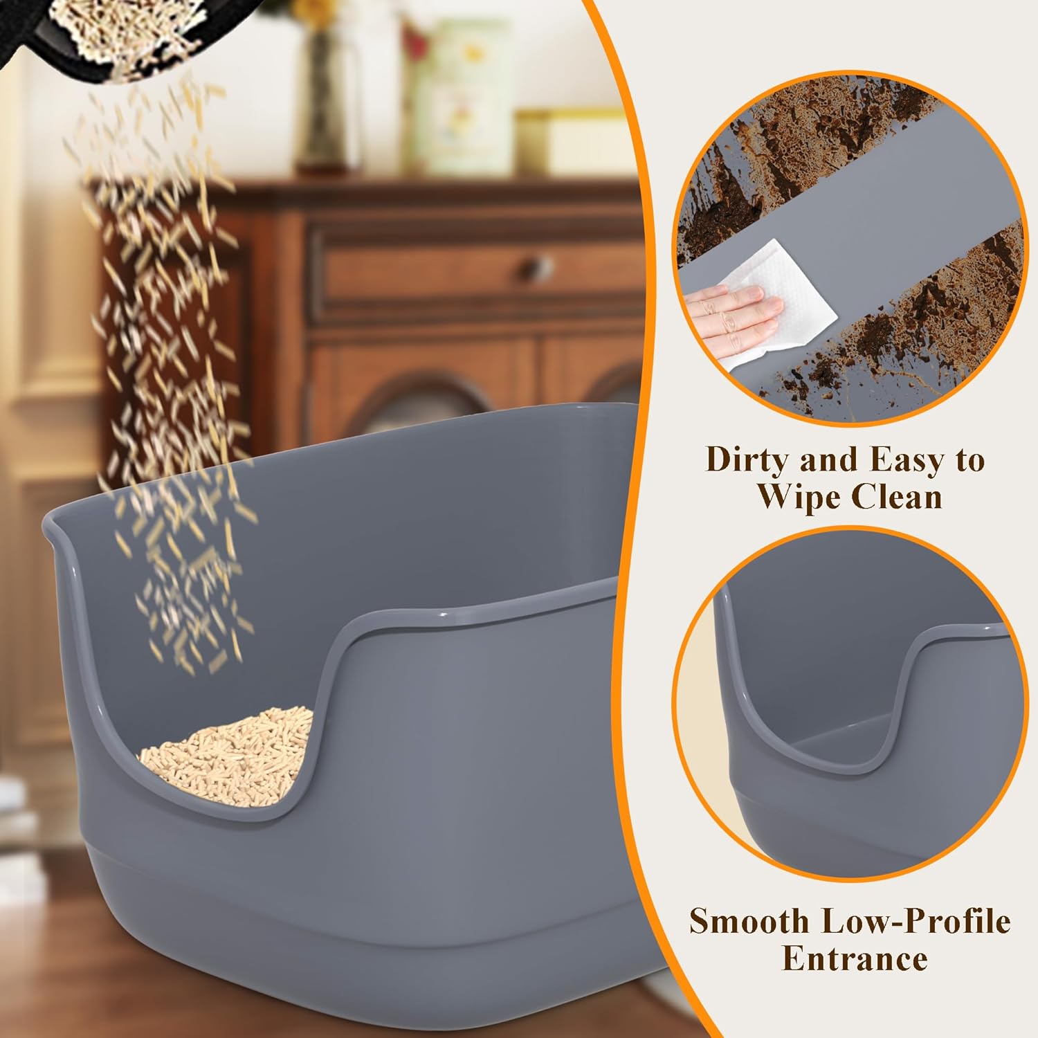 - Litter Box Type : Pan Litter Box
