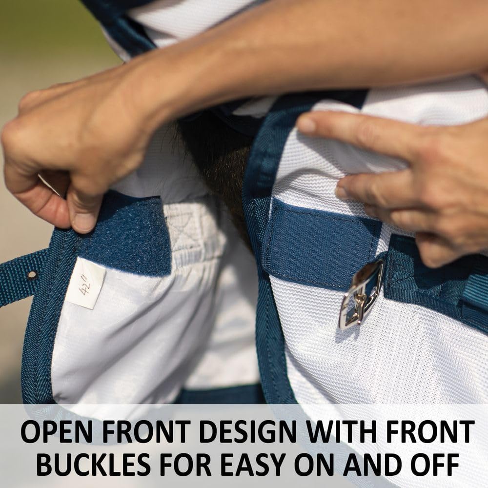 - 80% UV PROTECTION FOR ALL BREEDS β Expertly crafted with a 300D polyester interlock mesh, these fly sheets offer 80% UV protection, ideal for horses, ponies, and minis, ensuring their safety under the sun.