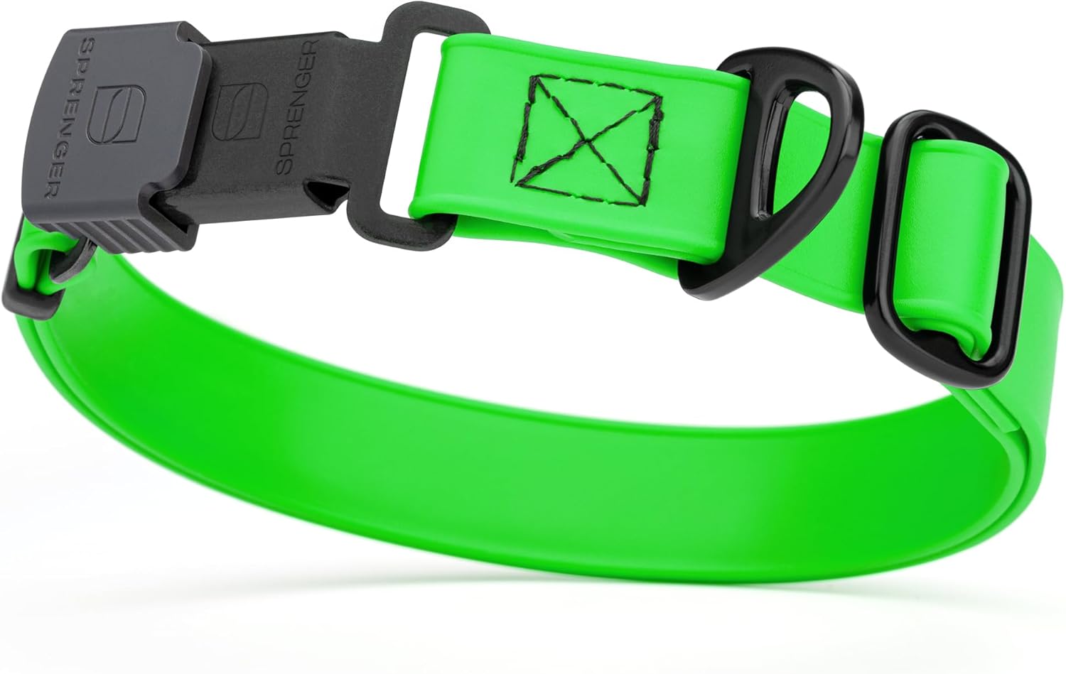 Dogline Biothane Waterproof Dog Collar with Herm Sprenger Black Stainless Steel Quick Release Buckle – Heavy Duty Tactical Durable Collar for Dogs – Comfortable and Safe Pet Collar W3/4" L12-19 Green