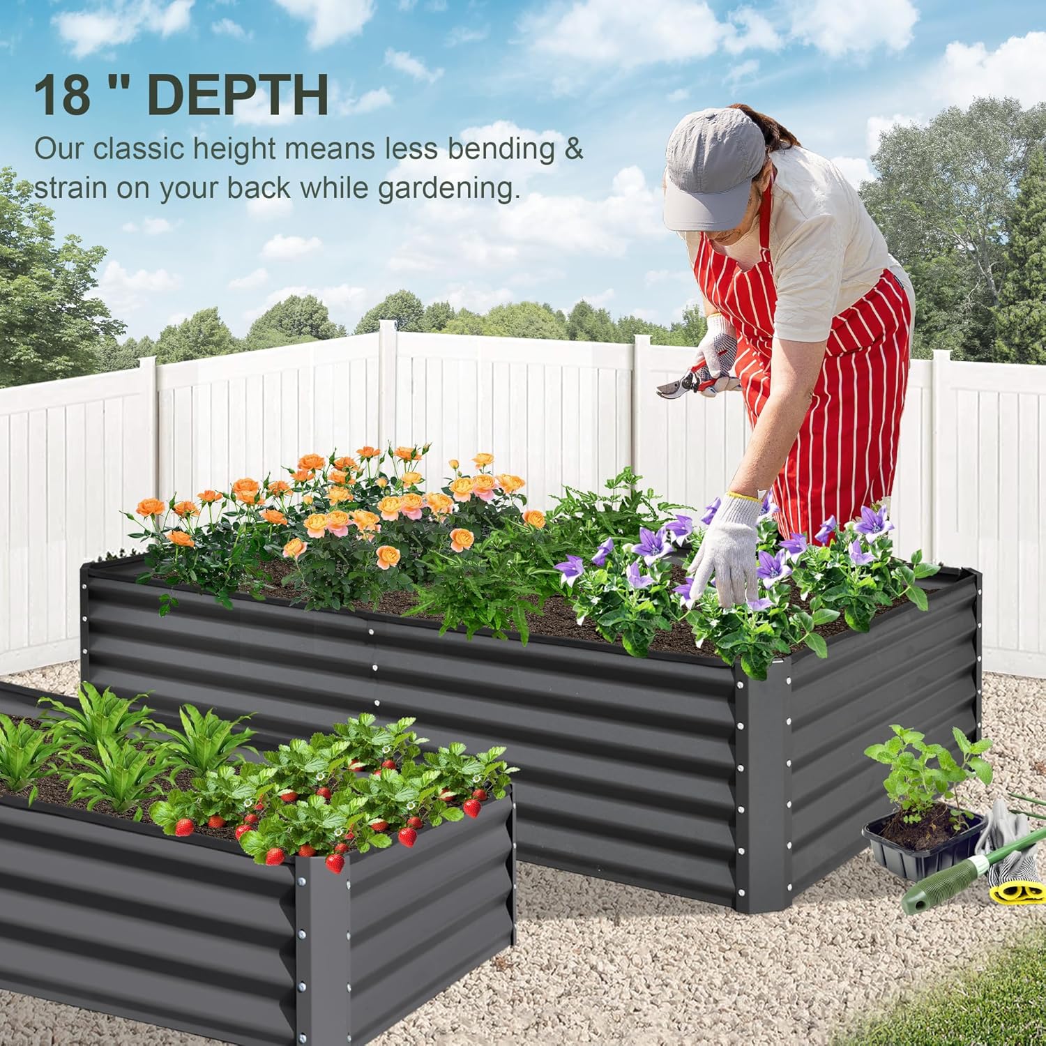 - Thicker Material: Made of thick galvanized steel plate with eco-friendly coating, rust-proof and durable. The 0.8 mm thickness, reaching 1.8 mm in the thickest part, ensures long-lasting raised garden beds' outdoor aesthetics.