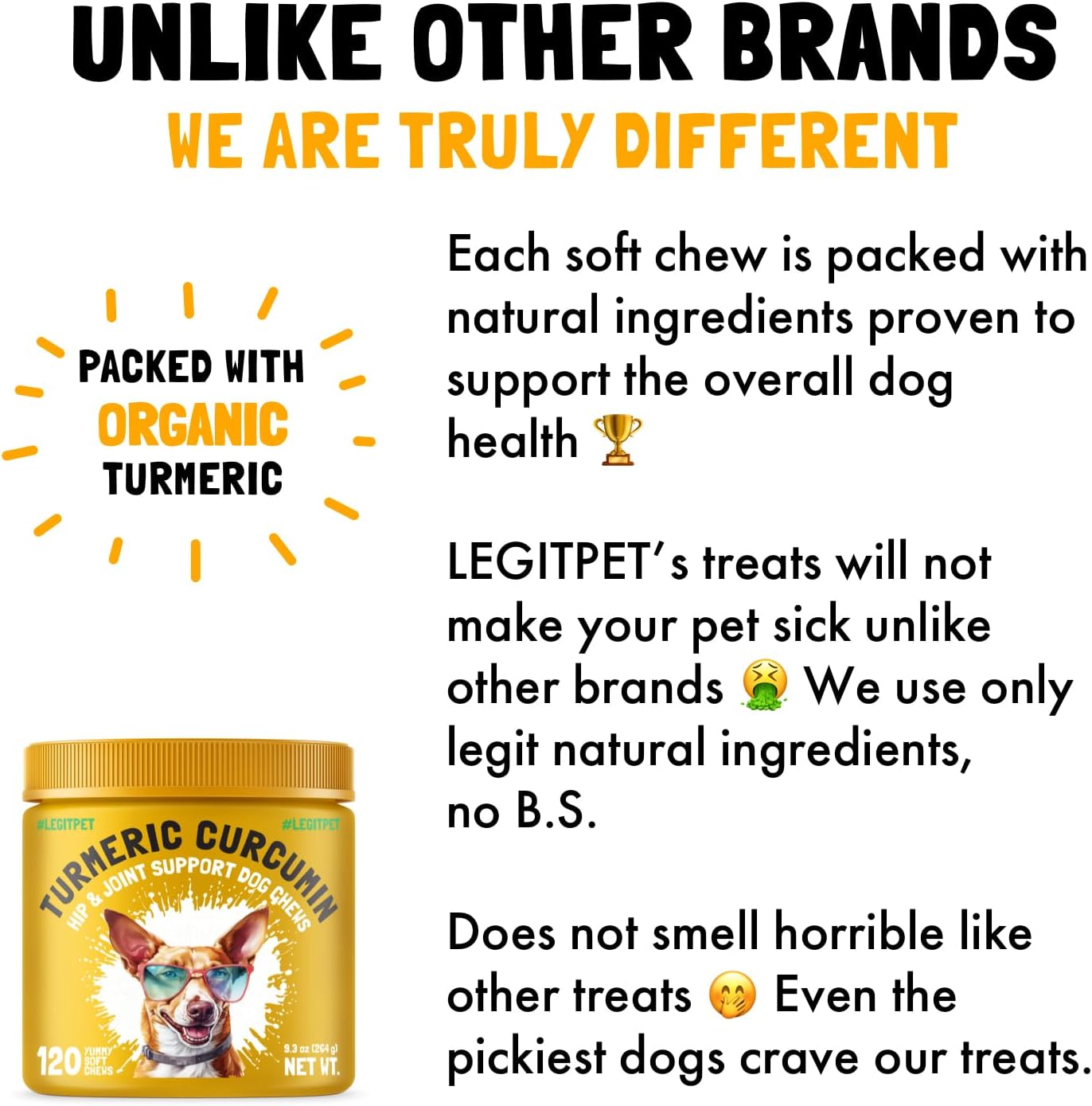 Turmeric Curcumin Hip & Joint Dogs Supplement Anti-Inflammatory Support for Arthritis & Mobility with Collagen & BioPerine Pain Relief Antioxidant Digestive Cardiovascular and Liver Health 120 Chews