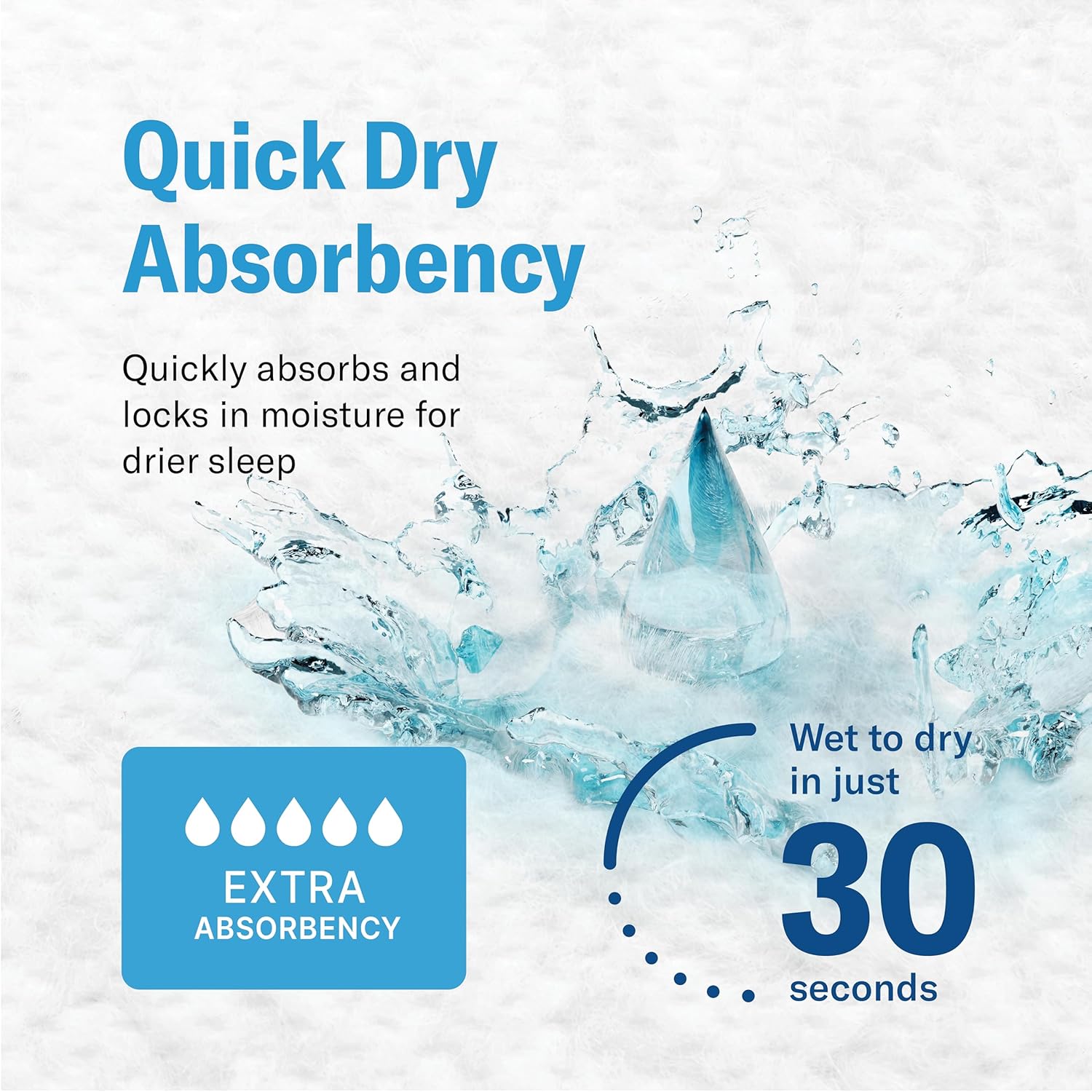 - LEAKLOCK TECHNOLOGY — Enjoy 5 layers of comfortable protection: (1) Non-woven top sheet for a soft feeling on skin. (2) Absorbent, soft tissue for ultimate comfort. (3) Polymer beads for maximum absorbency. (4) Soft fluff core provides added comfort, creating a quiet and quality sleep. (5) Waterproof barrier layer for a leak-free and odor-free night.