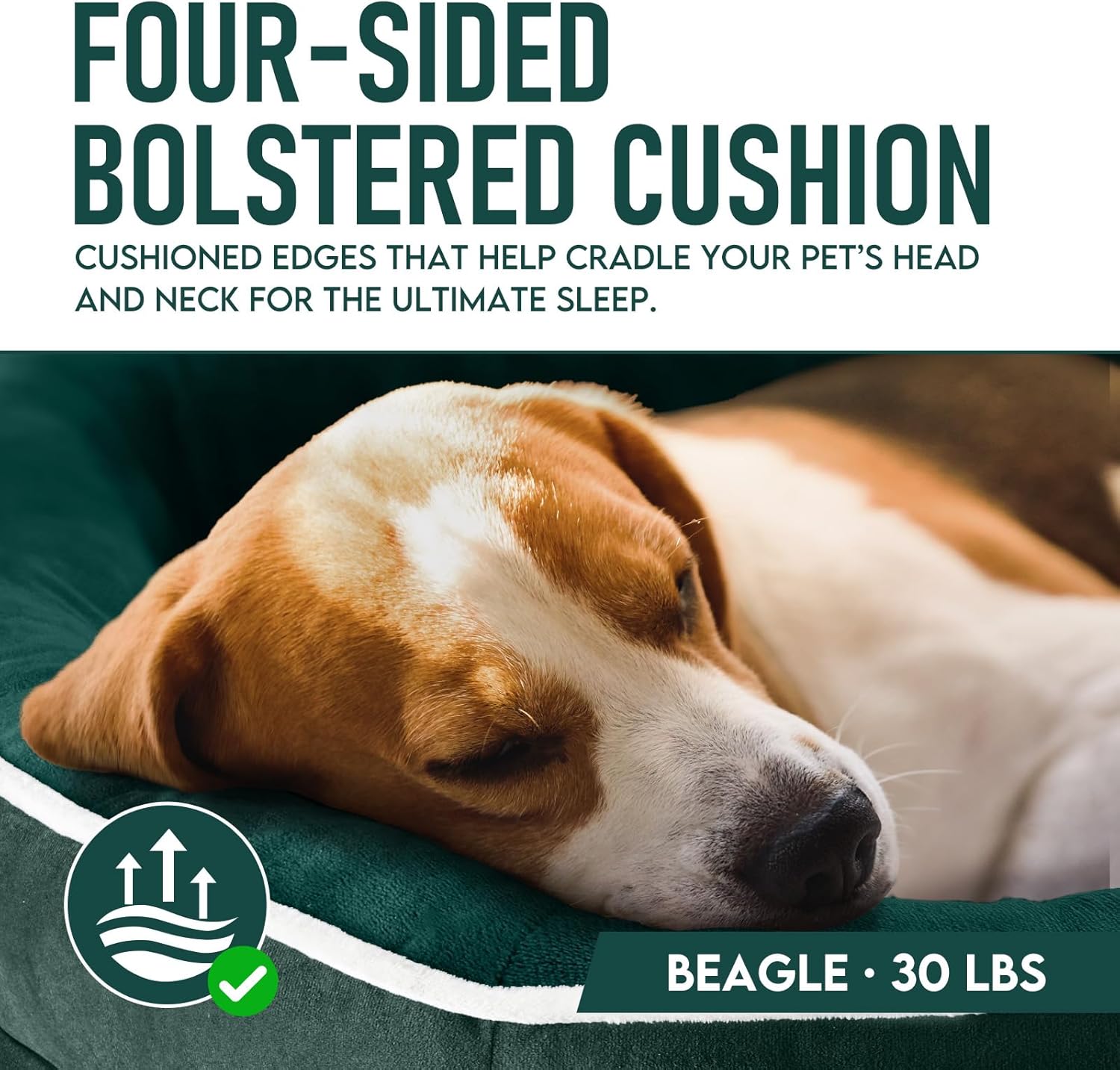 OhGeni Orthopedic Dog Couch Pet Sofa Large Sized Cat Beds with Comfort Foam Support, Soft Comfortable Fabric, Machine Washable Waterproof Removable Cover, 35-Inch (Dark Green)