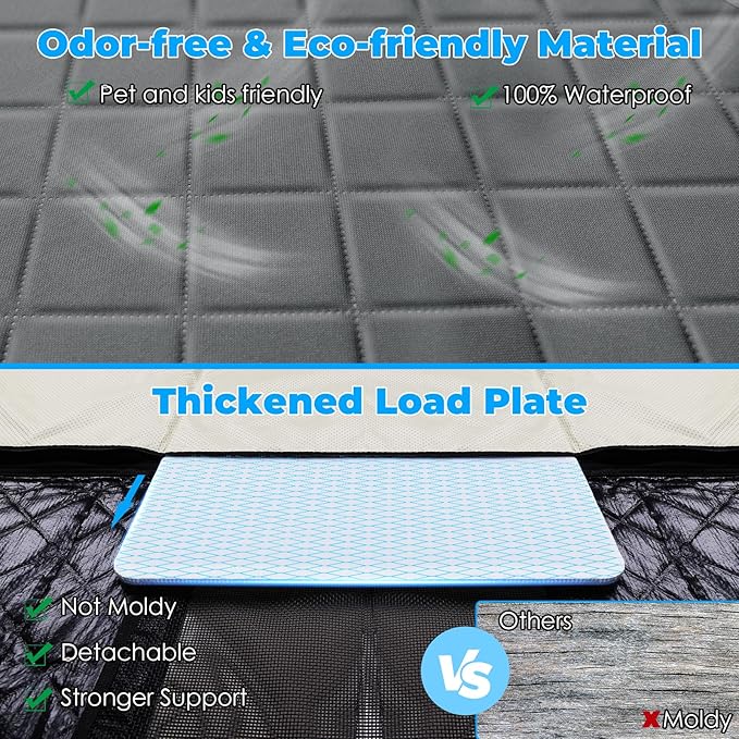 - Fits Full-Size SUVs & Trucks: 56.7 " L x 30.3" W (XL hard bottom size) is designed for full size SUVs and Crew Cab Trucks, suitable for F150/ F250/F350/RAM 1500/Tundra/GMC Crew Cab, etc. Please measure the space of your back seat before ordering