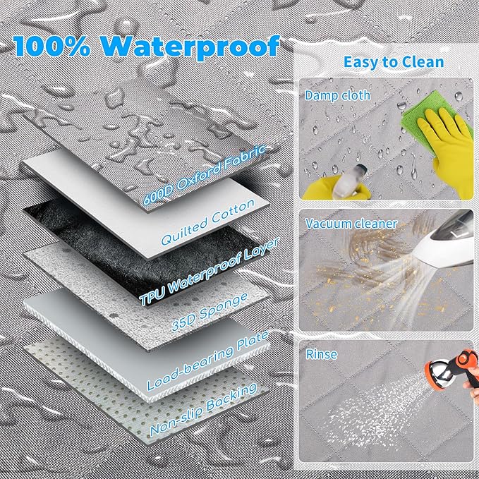 - Ultimate Comfort: The padded hard bottom is built in 6-layer protection to make your dogs feel much more comfortable while traveling in the truck. The hard plate is covered with a layer of 35D sponge to enhance comfort, and held in place by premium non-woven fabric, so it's easy to remove for easy cleaning of the dog truck seat cover