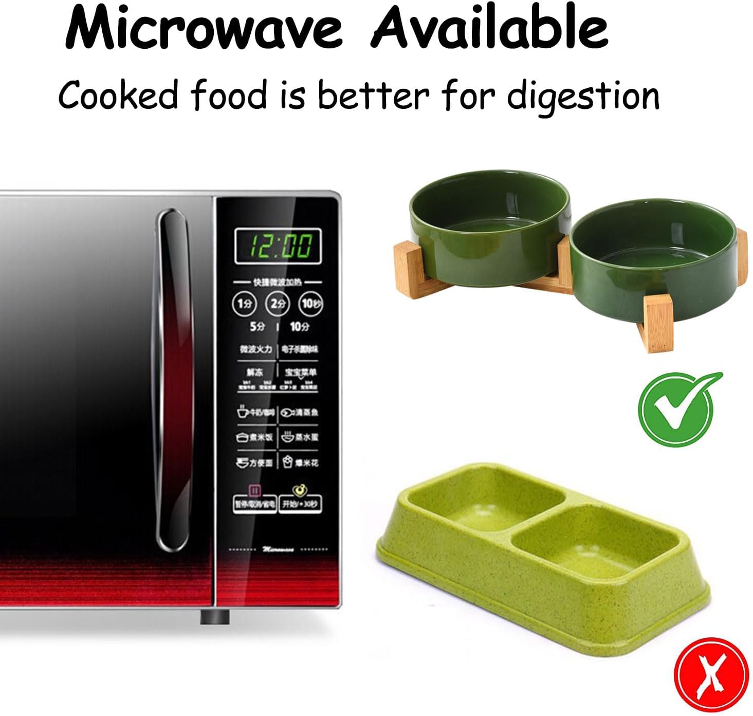 - Double Bowl Design:One dog bowl for food and one for water, Each ceramic cat bowl has a Unique wooden stand, raising the dishes closer to your pet for more comfortable eating