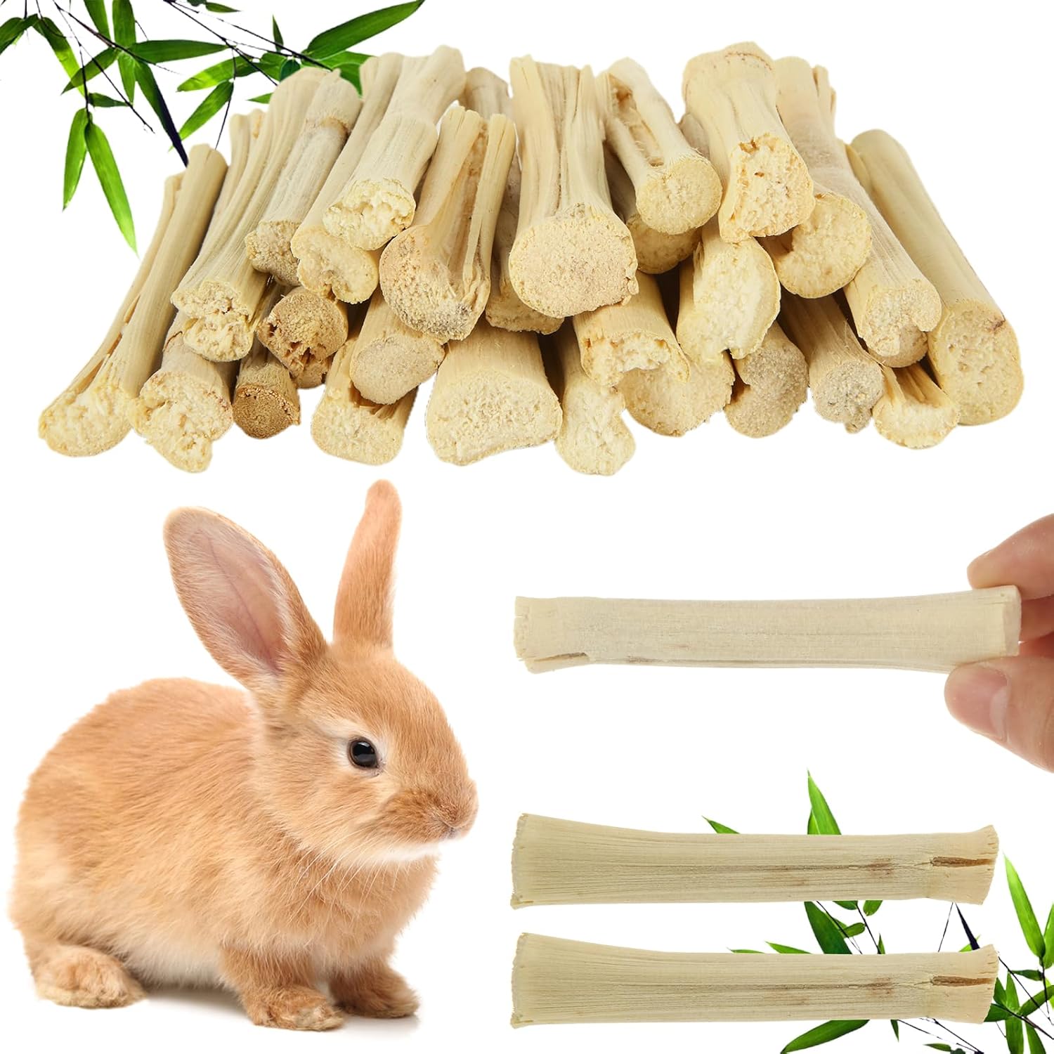 - Selected Natural Material: Selected high-quality bamboo sticks grow in the natural environment, after cuttingβ trimmingβ cleaningβ dryingβ sortingβ packaging. Bamboo sticks for rabbits are pure handmade, easy to save, not easy to moisture mold, safe and secure, loved by most small pets