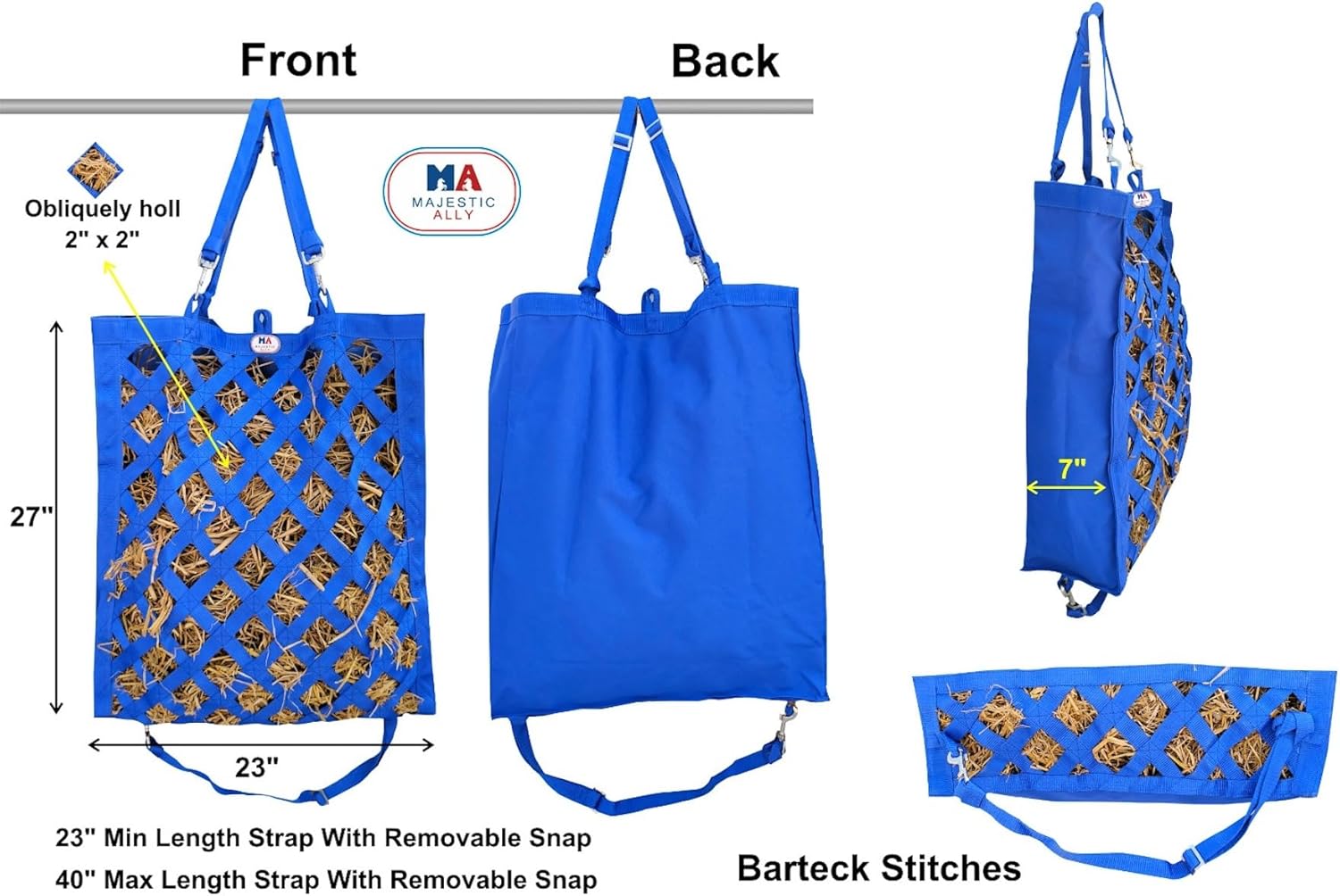 Majestic Ally Premium Nylon Hay Bag for Horses and Livestock, Simulates Grazing, Slow Feeding, Heavy-Duty PP Webbing,Quick-Adjust Straps, Small Hole for Digestion, Multiple Colors (Purple)