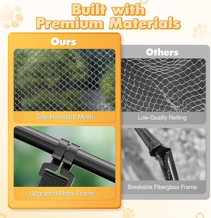 - 😽【Better Materials for Greater Stability】As a cat owner, I know how important it is to give our feline friends a safe and secure space. That’s why the Rywell catio outdoor cat enclosure is crafted from high-quality, rust-resistant steel and ultra-fine mesh. It’s built to withstand your cat’s claws and teeth while keeping them safe from predators and bugs. The reinforced corners and protected seams ensure long-lasting stability, so you can relax knowing your cats are protected.