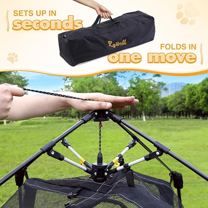 - 😽【Assembly couldn’t be simpler】Once out of the packaging, simply undo the ties then pull the top string and press down firmly until it snaps into place, then follow the instruction to install the rest-just like a camping tent! Suggest pegging down the corners so the shelves are tighter for easy to jump from one level to other. It comes with a travel pouch for easy storage and movement. This catio cat tent fits easily into the back of a truck or SUV so your kitty can supervise as you set up camp.