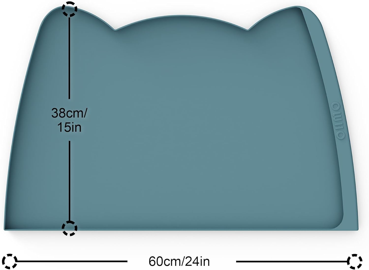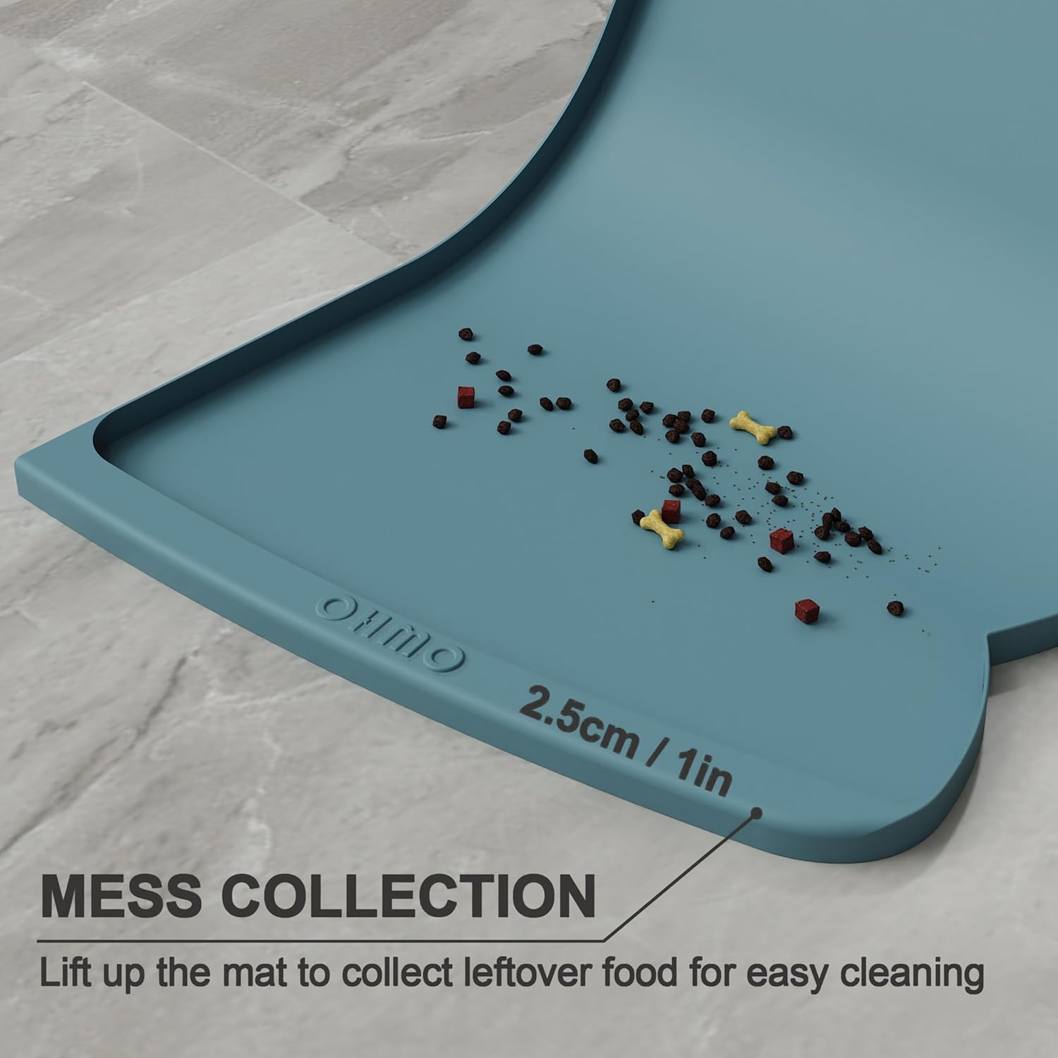 OHMO Dog Food Mat(Light Blue, 24 * 15'') w/Residue Collection Pocket Silicone Pet Feeding Mat for Floor High Edges Anti Spills Waterproof Cat Water Bowl Tray, Easy Clean Placemat