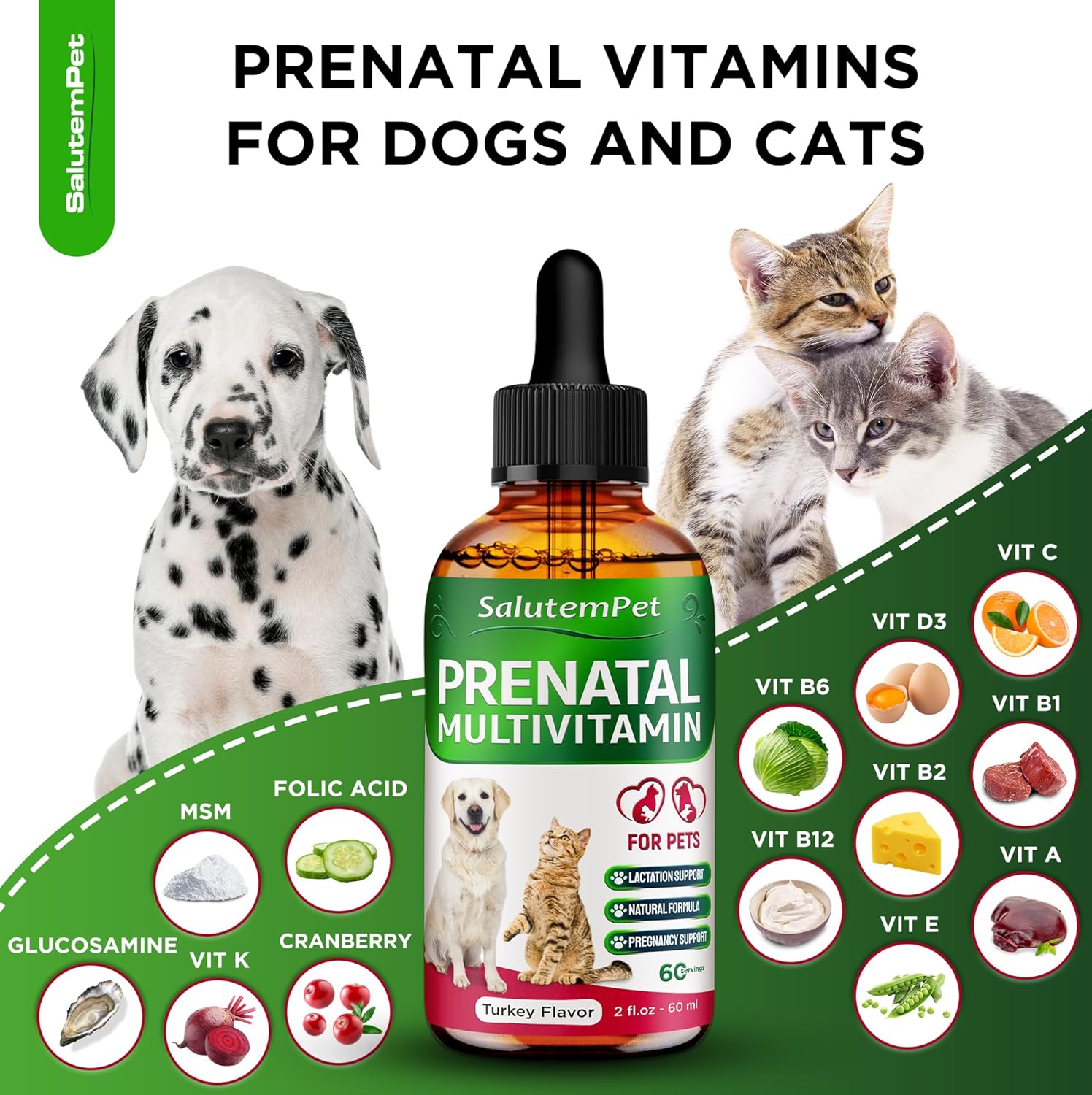 Dog Prenatal Vitamins for Moms During Lactating – Prenatal Vitamins for Dogs & Cats of All Breeds to Care for Pet Development – Multivitamin for Cats – 2 Oz – Herbal Supplement for Pets