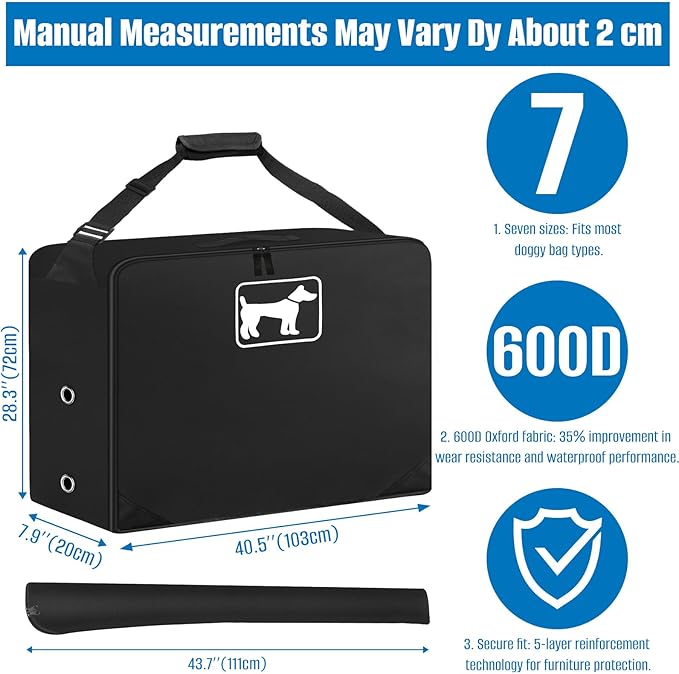 - 【Designed for Travelling Dog Playpen Storage】You will select the dog playpen storage bag is 40.5 "L x 7.9 "W x 28.3 ”H(Manual Measurements May Vary Dy About 2 Cm), helps you to organise and store dog fens, toys, picnic gear and other camping essentials efficiently, avoiding clutter.