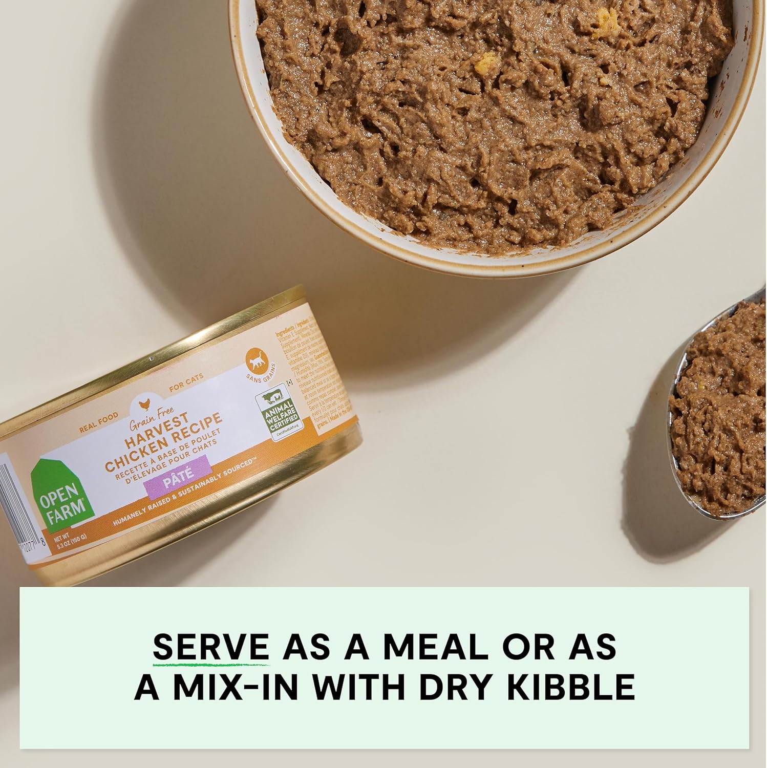 Open Farm Canned Cat Food, Paté for Complete & Balanced Nutrition, Grain-Free and Legume-Free Wet Cat Food, Harvest Chicken Recipe, 5.3oz Cans (Case of 12)
