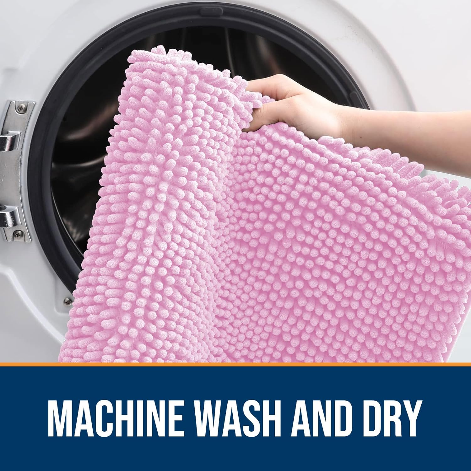 OLANLY Dog Door Mat for Muddy Paws 40x32, Absorbs Moisture and Dirt, Absorbent Non-Slip Washable Doormat, Quick Dry Chenille Mud Mat for Dogs, Entry Indoor Entryway Carpet for Inside Floor, Pink