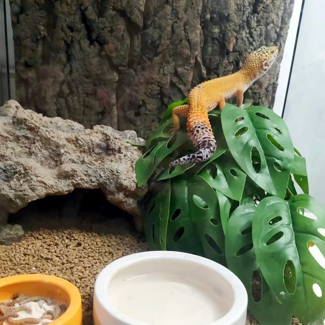 - Natural Habitat Decor: Lots of lifelike plants create a natural habitat for reptiles and amphibians, promoting a safe and relaxed environment while optimizing space utilization. The lush leaves not only serve as decorative landscaping but also provide hiding spots and climbing opportunities.