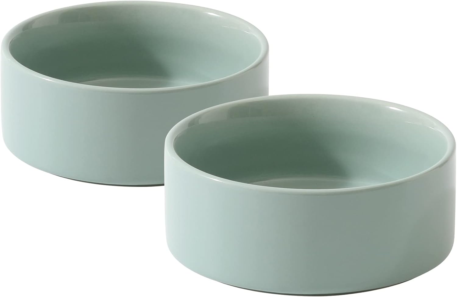 Ceramic Set of 2 Dog Bowls, Food and Water Bowls for Dogs, Puppy, 2pcs Dog Dishes, Pet Feeder(6inch, 2 x Light Green Bowls)