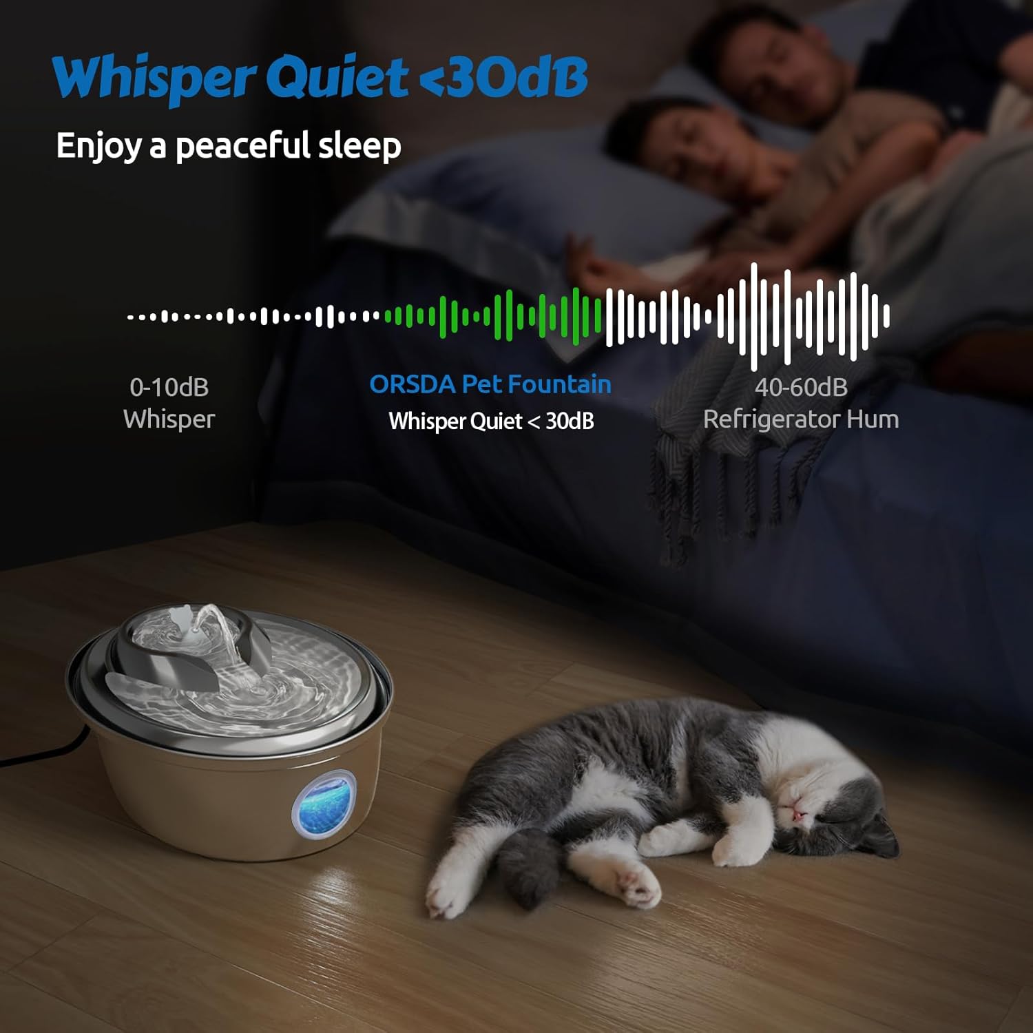 - Upgraded 304 Stainless Steel Visual Pet Fountain with Leak Proof Design: ORSDA Upgraded 3L/100oz fountain features an LED water level window, ensuring a clear view of your pets' drinking. SUS 304 food-grade stainless steel provides hygienic and clean water, while the locking lid design prevents leakage and isolates messes.